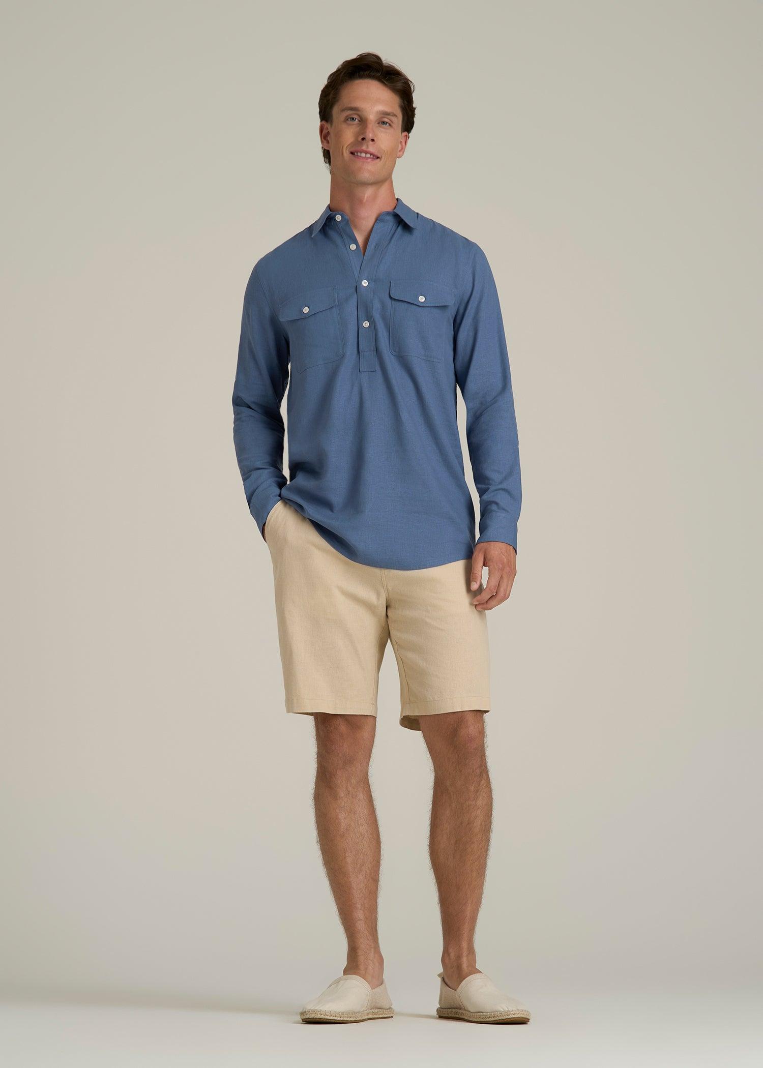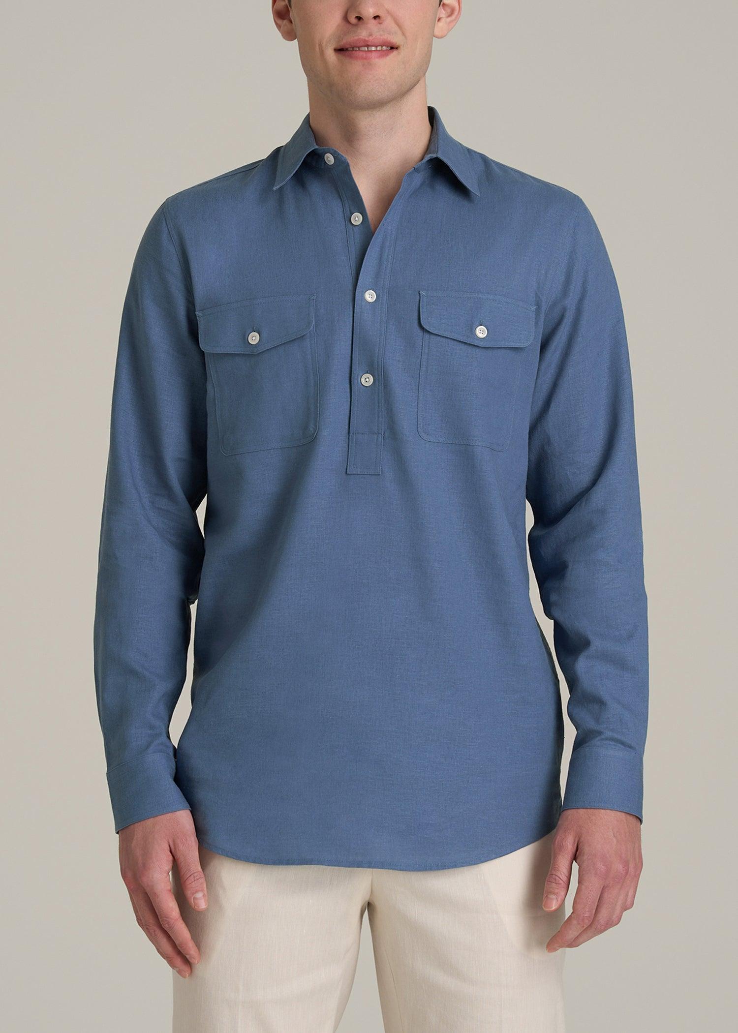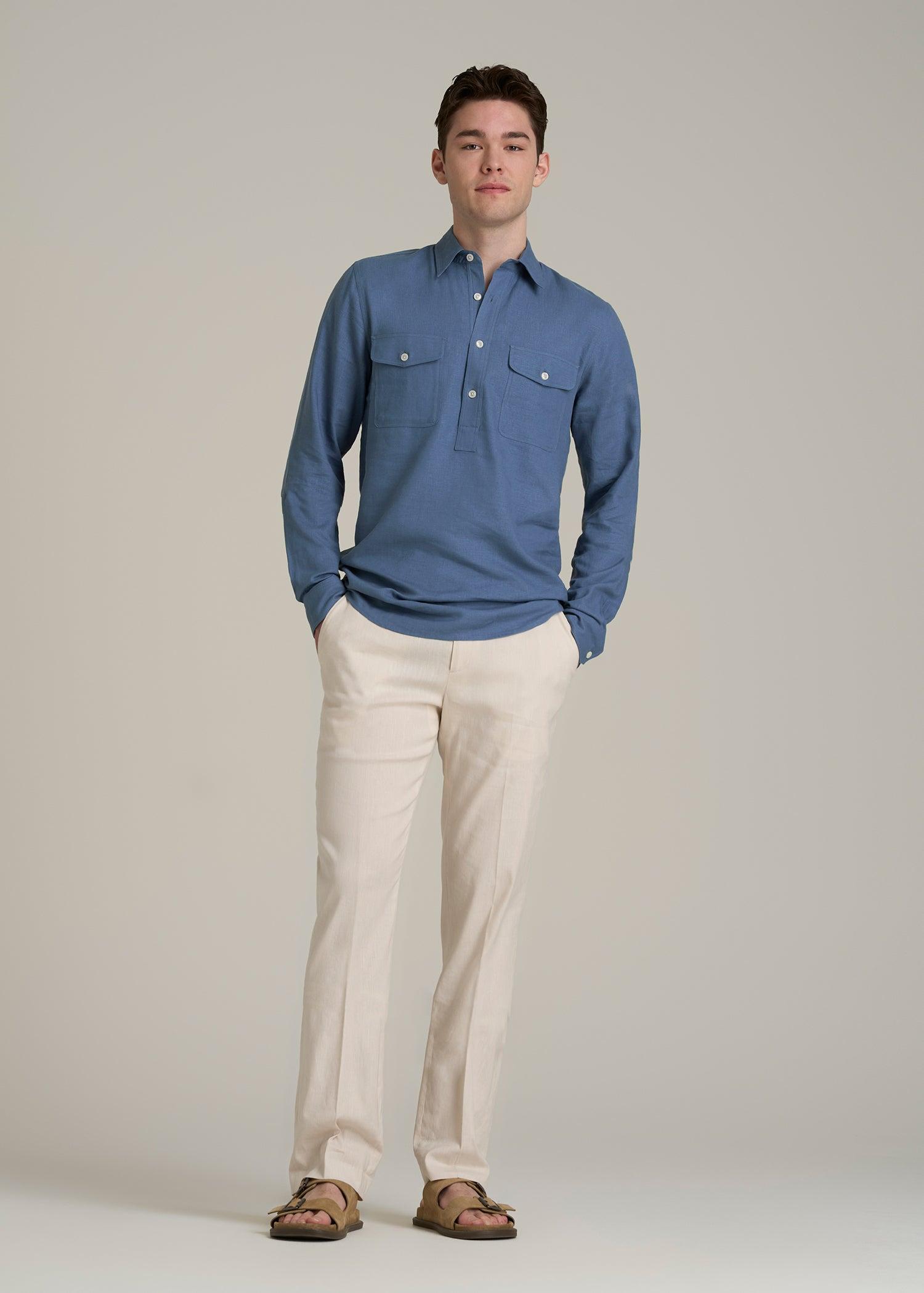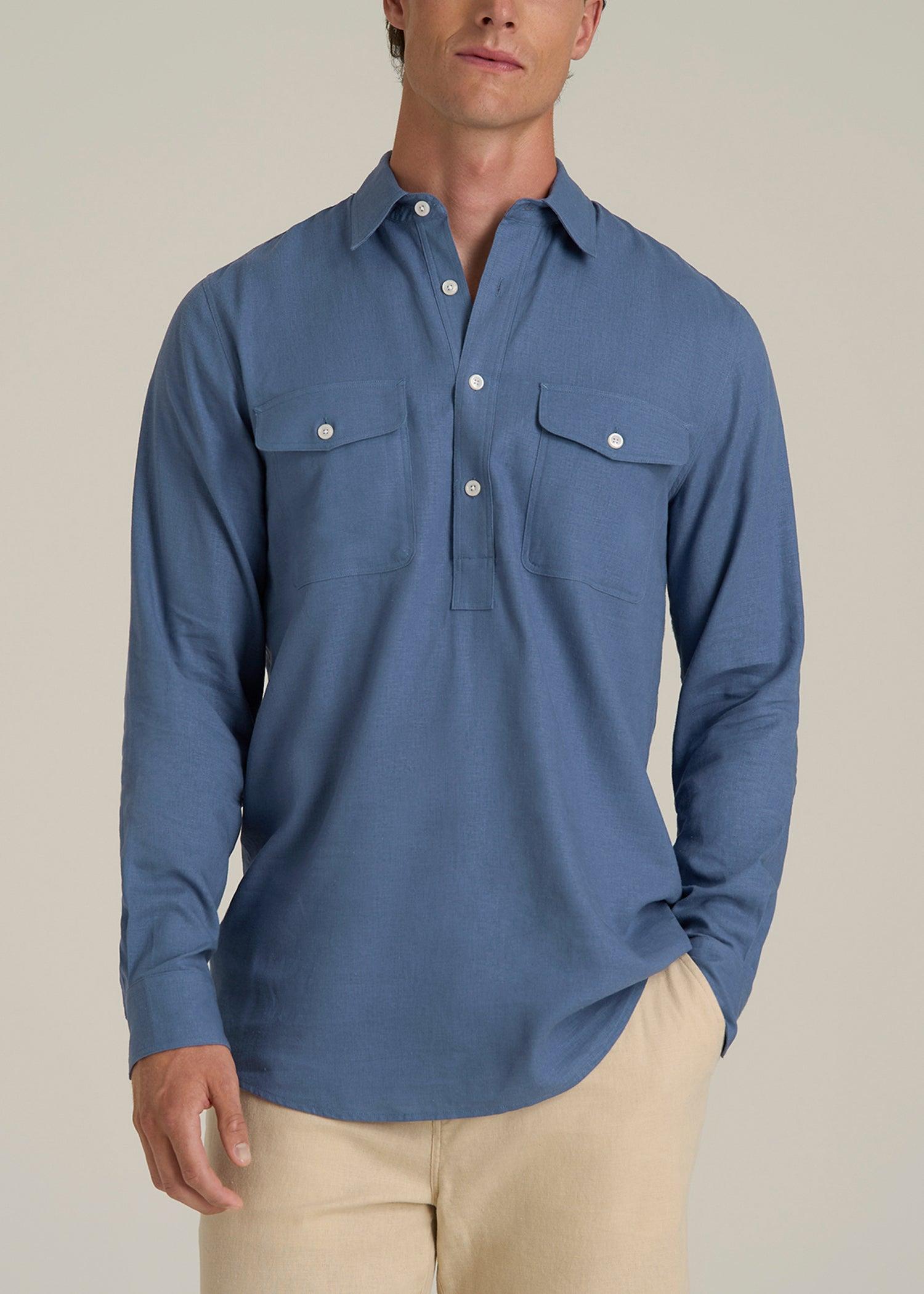 Linen Popover Shirt for Tall Men in Deep Cobalt Male