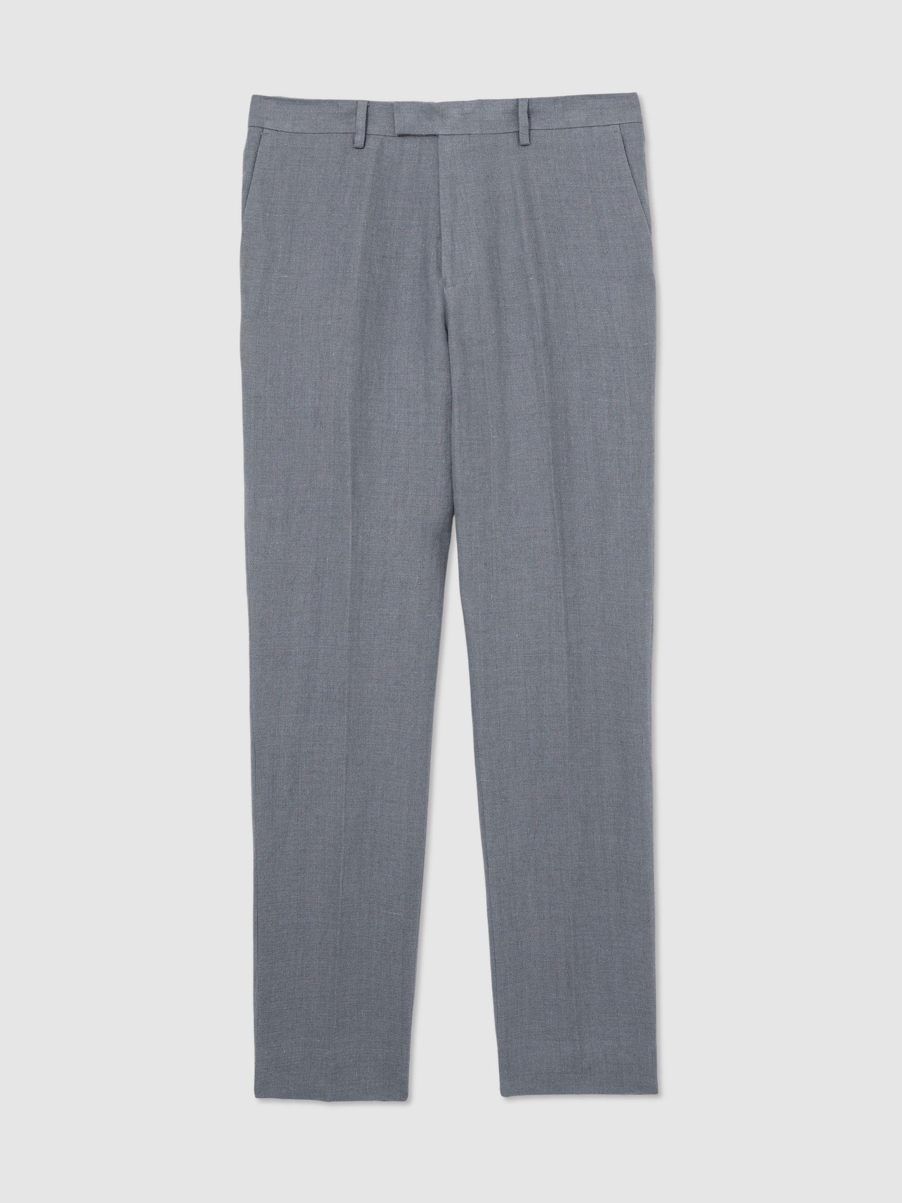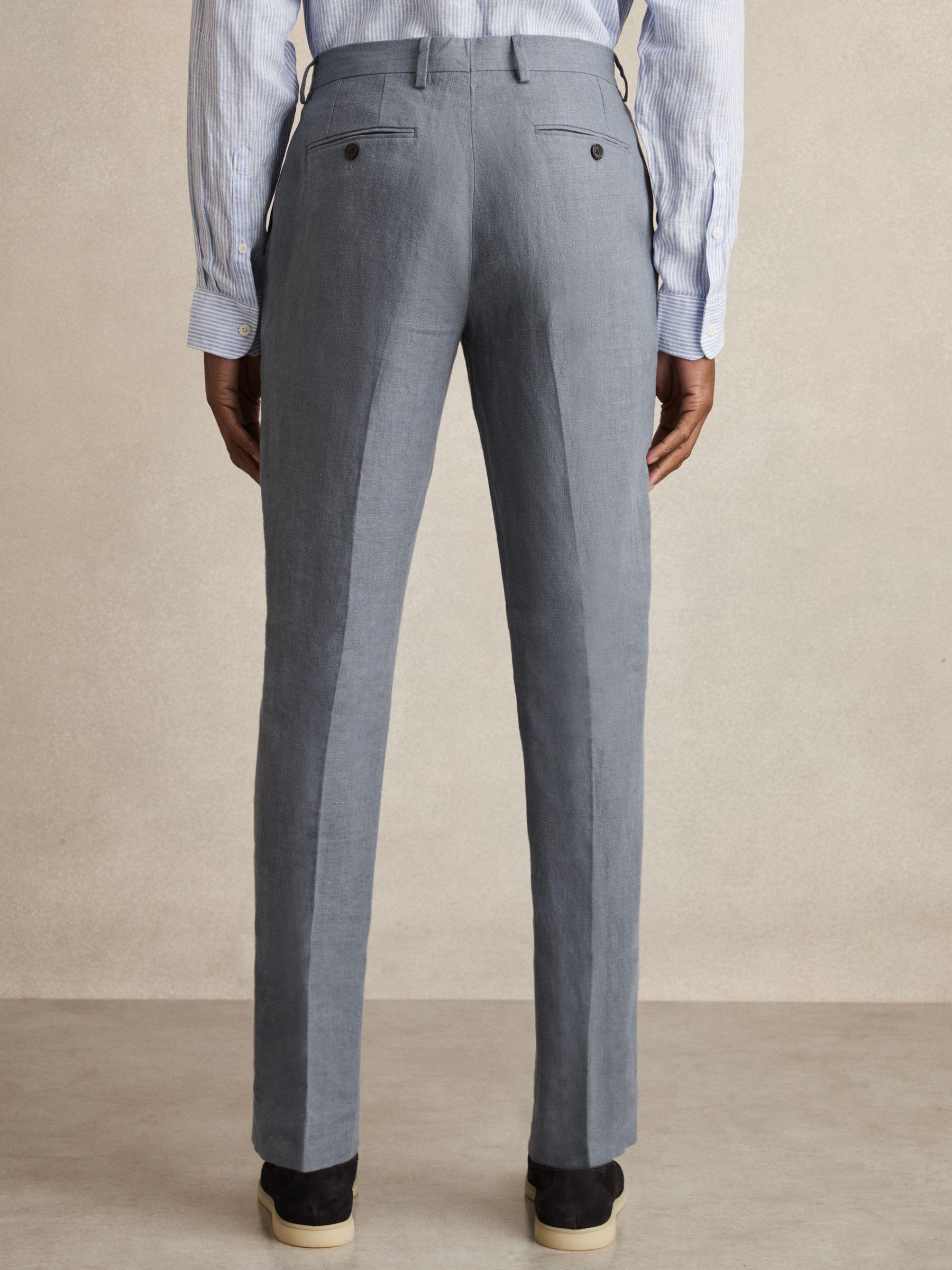 The Gosnold trousers are tailored from breathable linen with a naturally textured finish, offering lightweight comfort in warmer weather. Pressed creases refine the slim-fit silhouette. 100% linen Slim fit Side slip pockets Button welt pockets to reverse Hook-and-bar with zip.