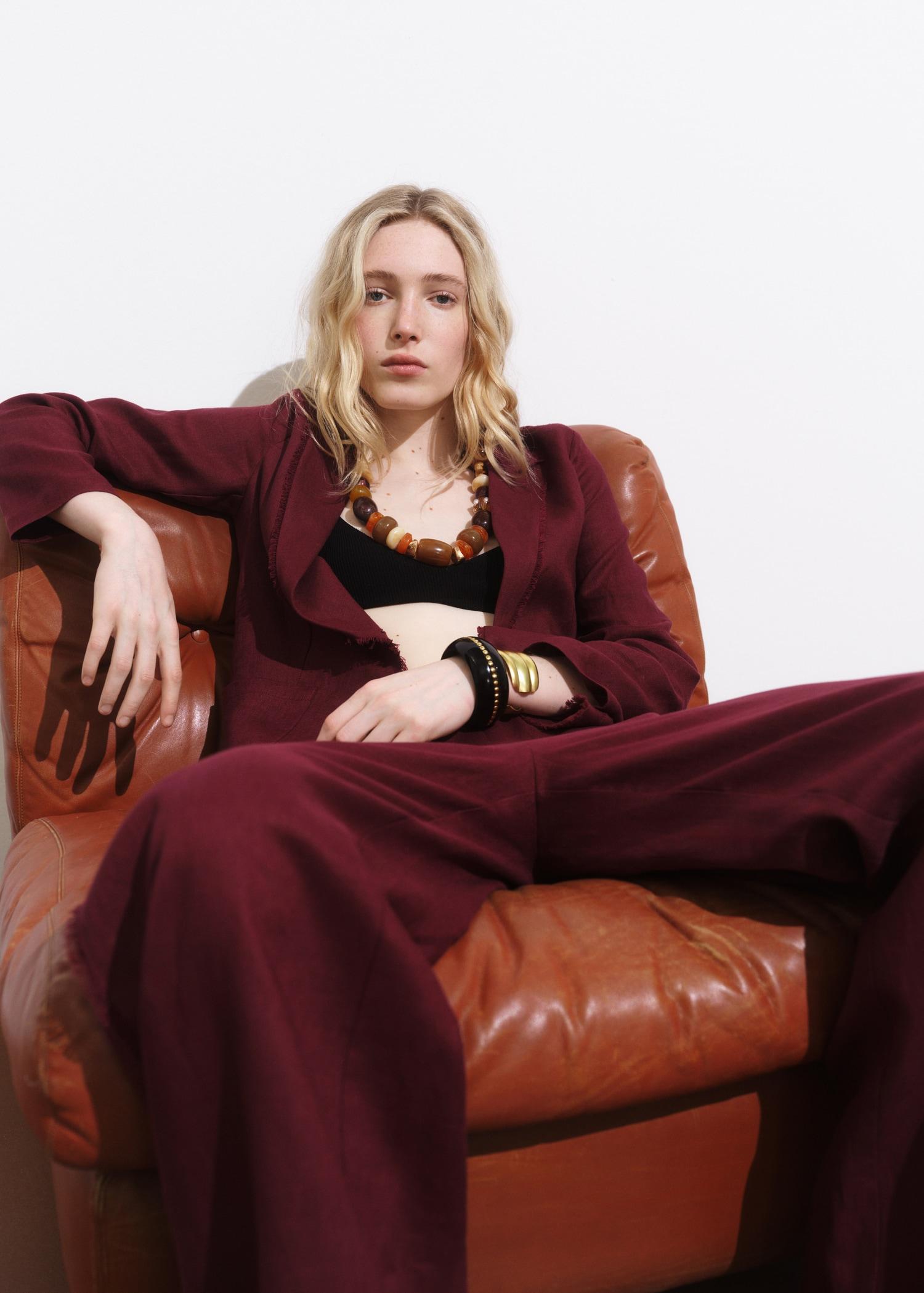 Linen suit blazer with frayed ends - Women | MANGO USA