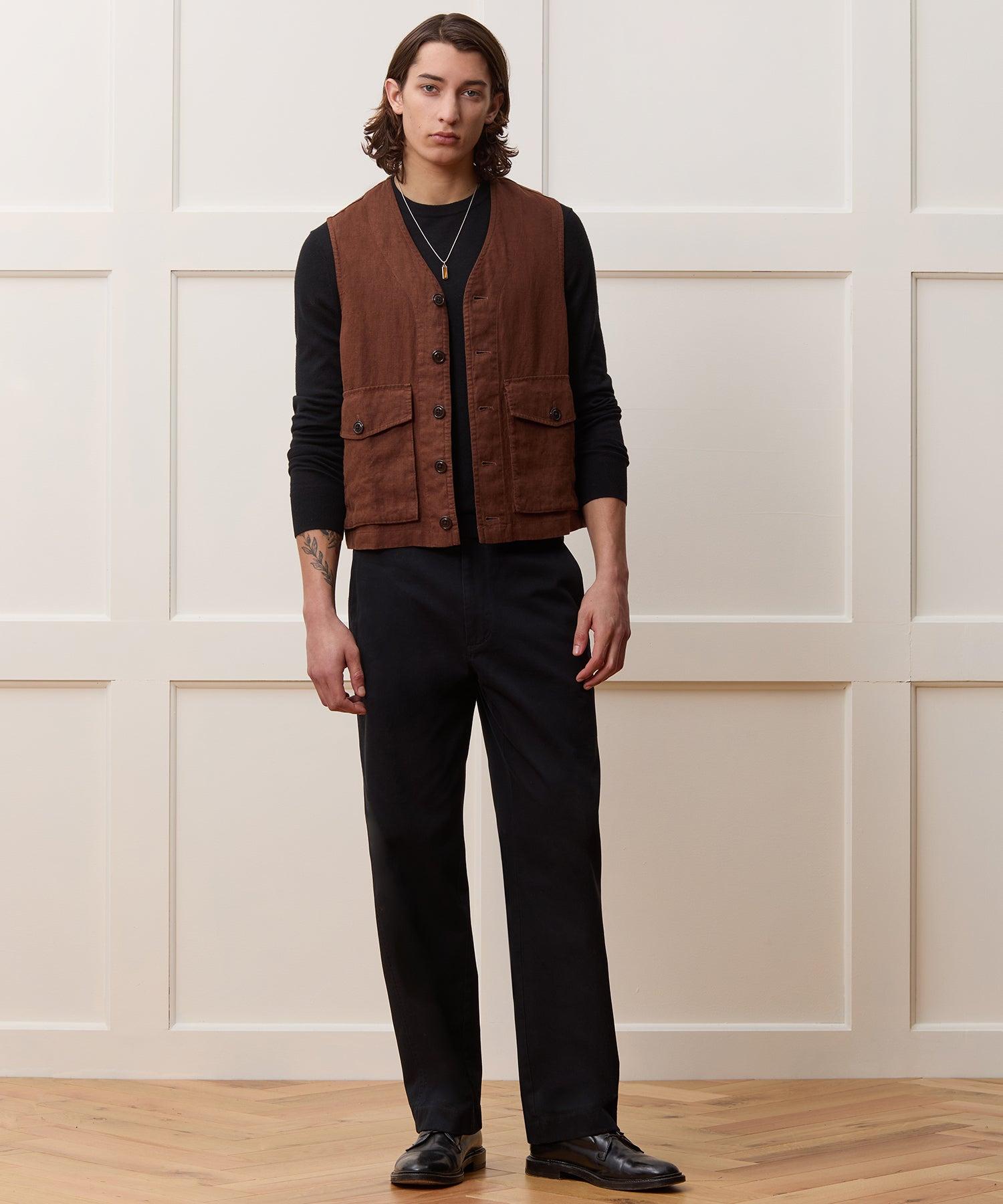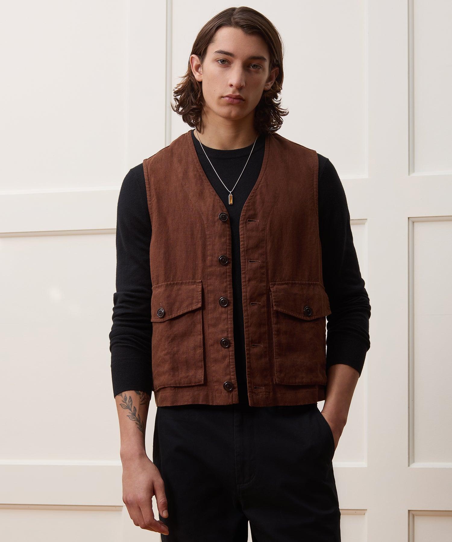 Vests are having a moment. This one pairs utility-inspired detailing — peep the two oversized patch-and-flap pockets at the front, which button close to securely stash your essentials — with a chic fabric. Made from a soft, unlined and washed down linen from the UK, this vest has a fairly classic fit, and hits just below the waist; try wearing it closed, in place of a tank top, or open as a layer over a tee or button-down. 100% Linen Classic Fit Unlined Button Front Two Button-Through Hip Pockets Fabric From the United Kingdom Imported Dry Clean Only Style OU1242805
