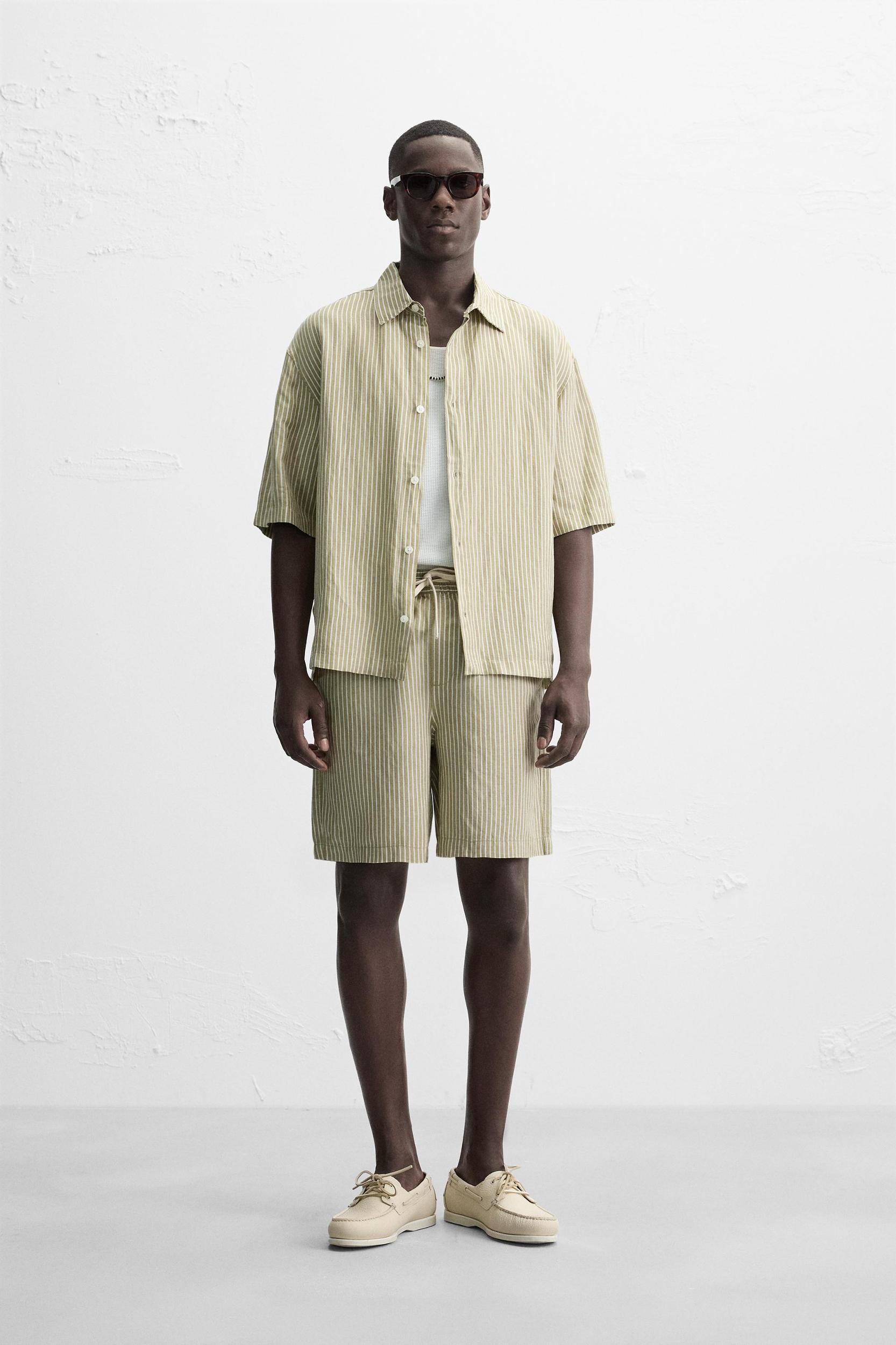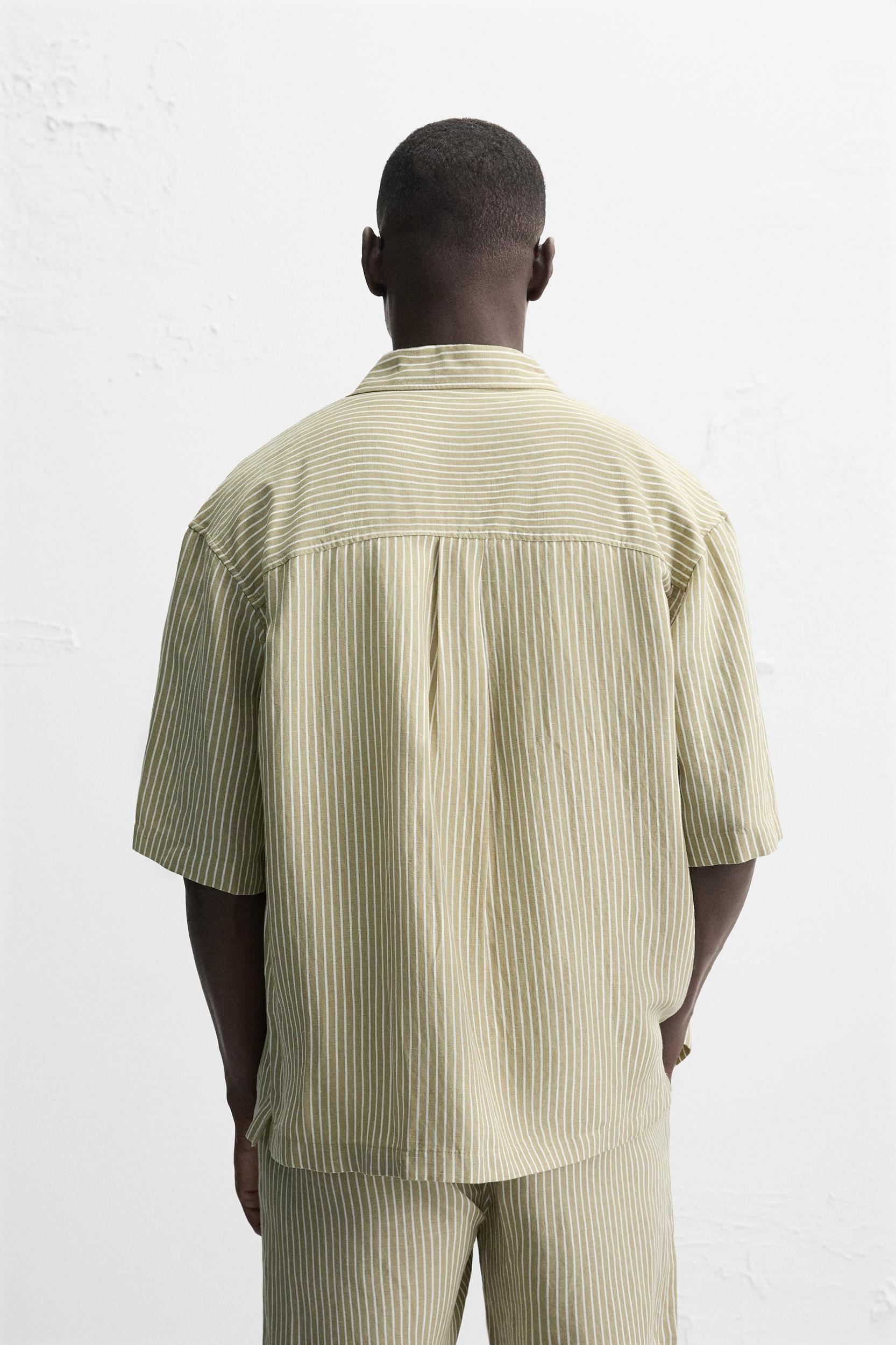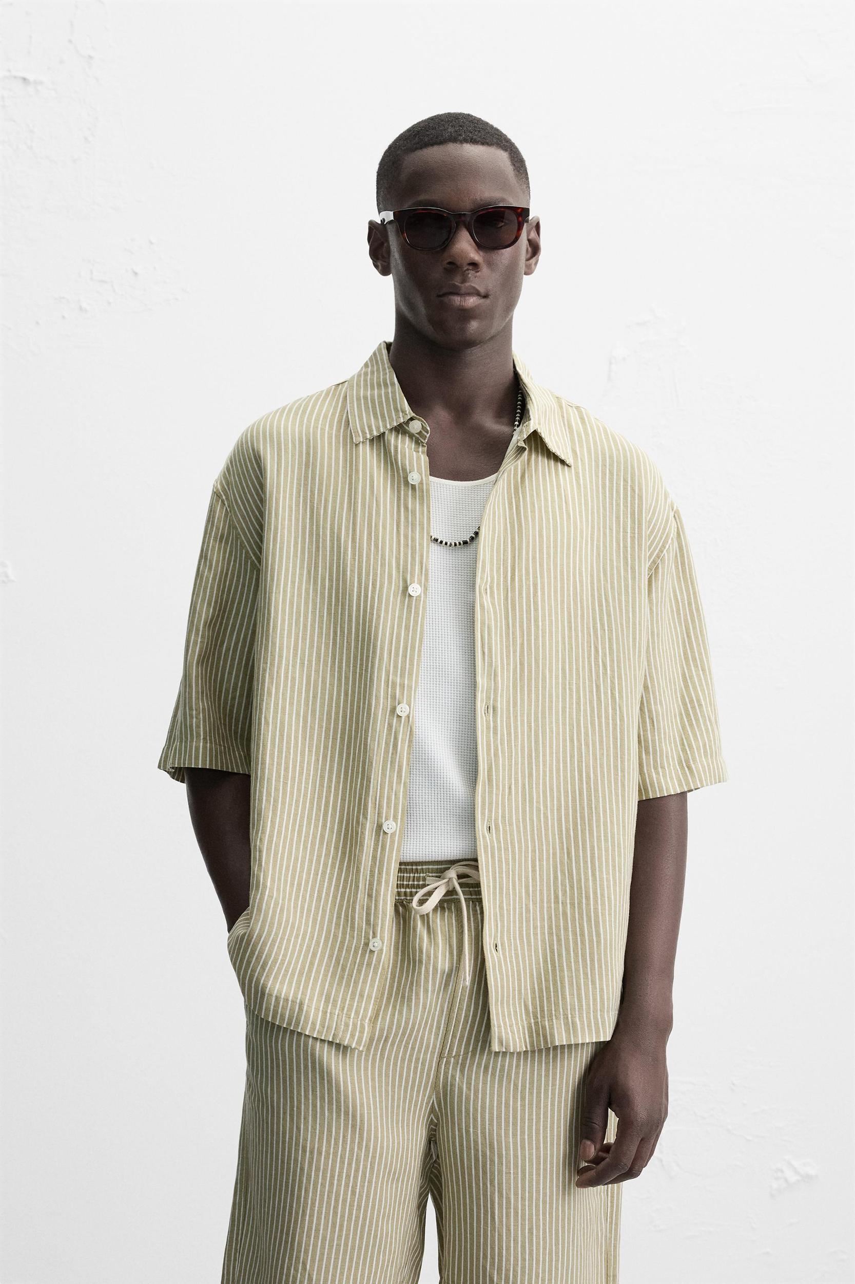 Relaxed fit shirt made of linen and viscose blend fabric. Lapel collar and short sleeves. Front button closure.