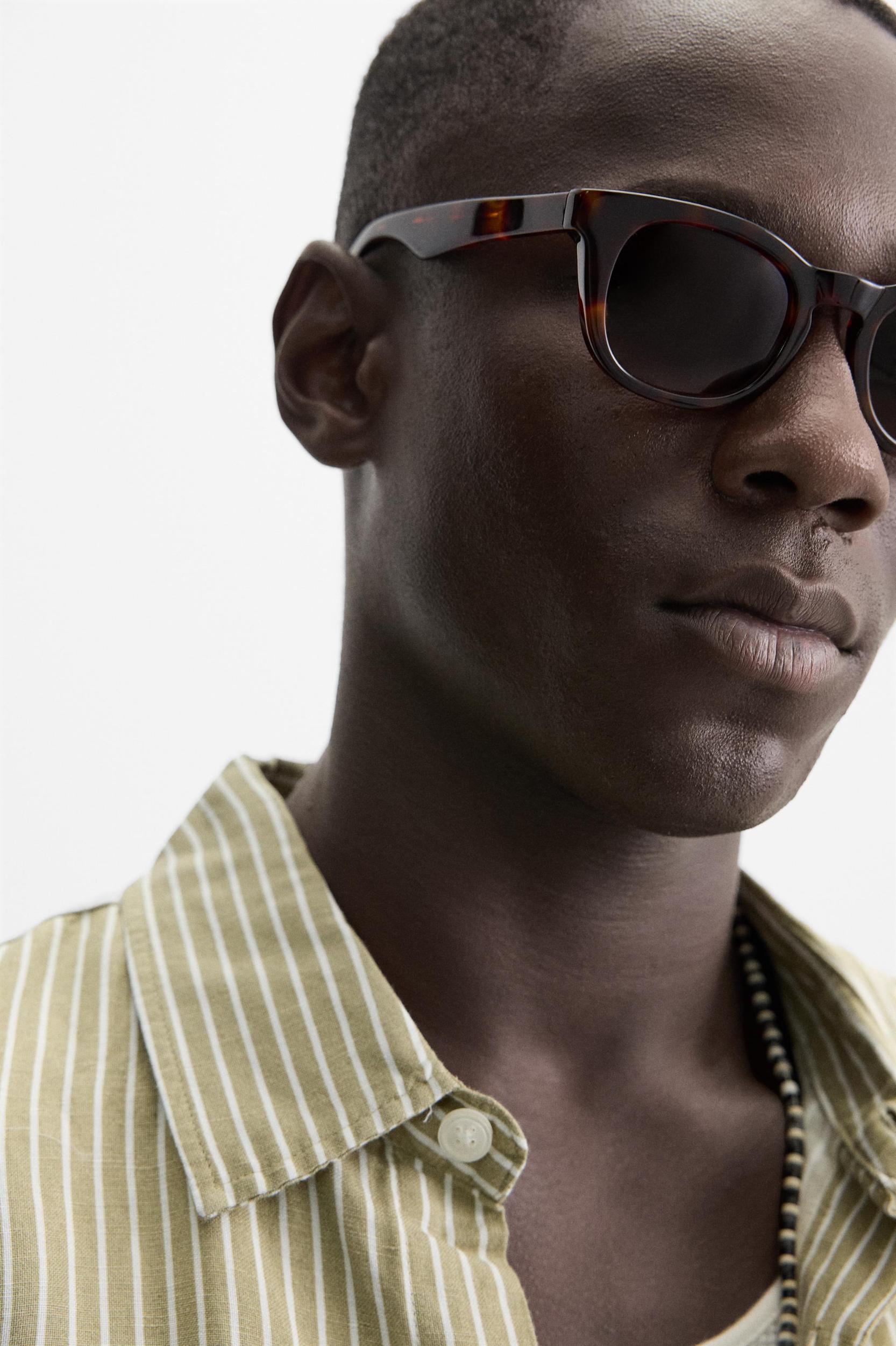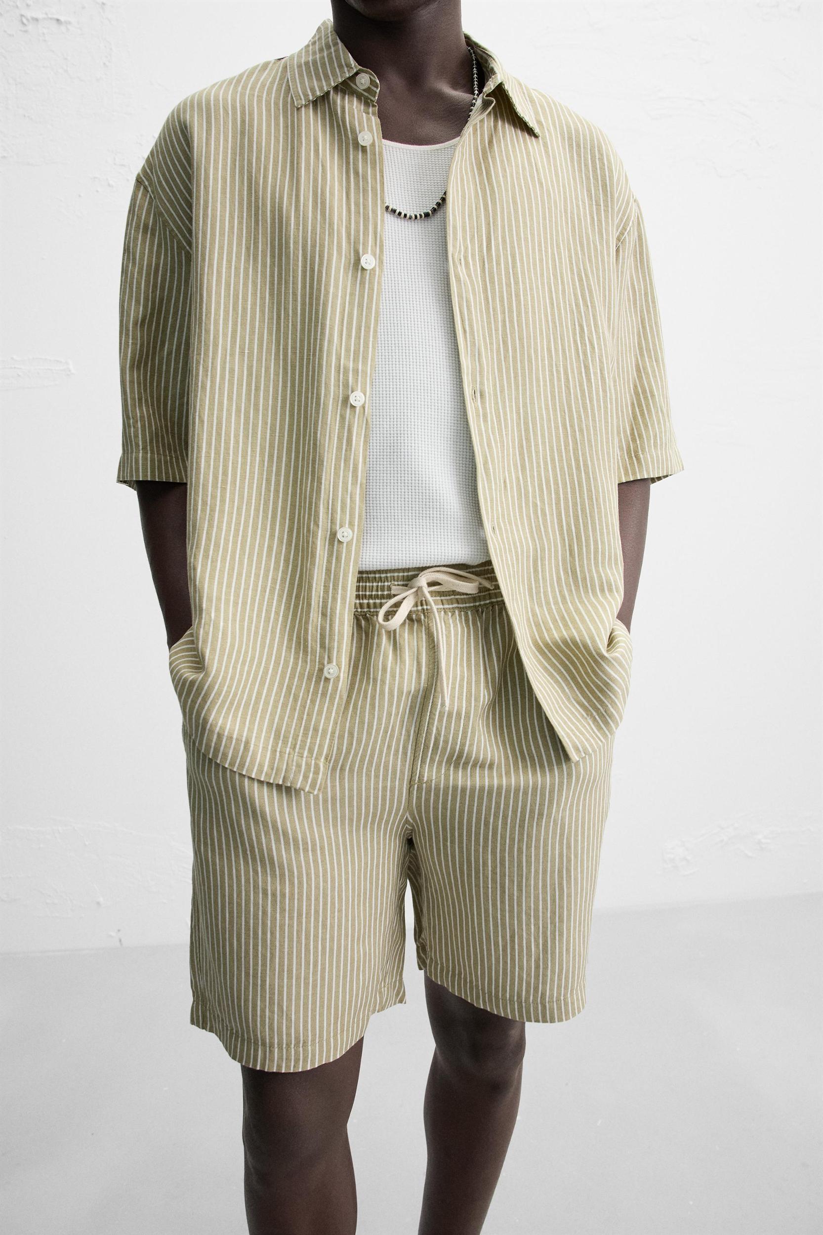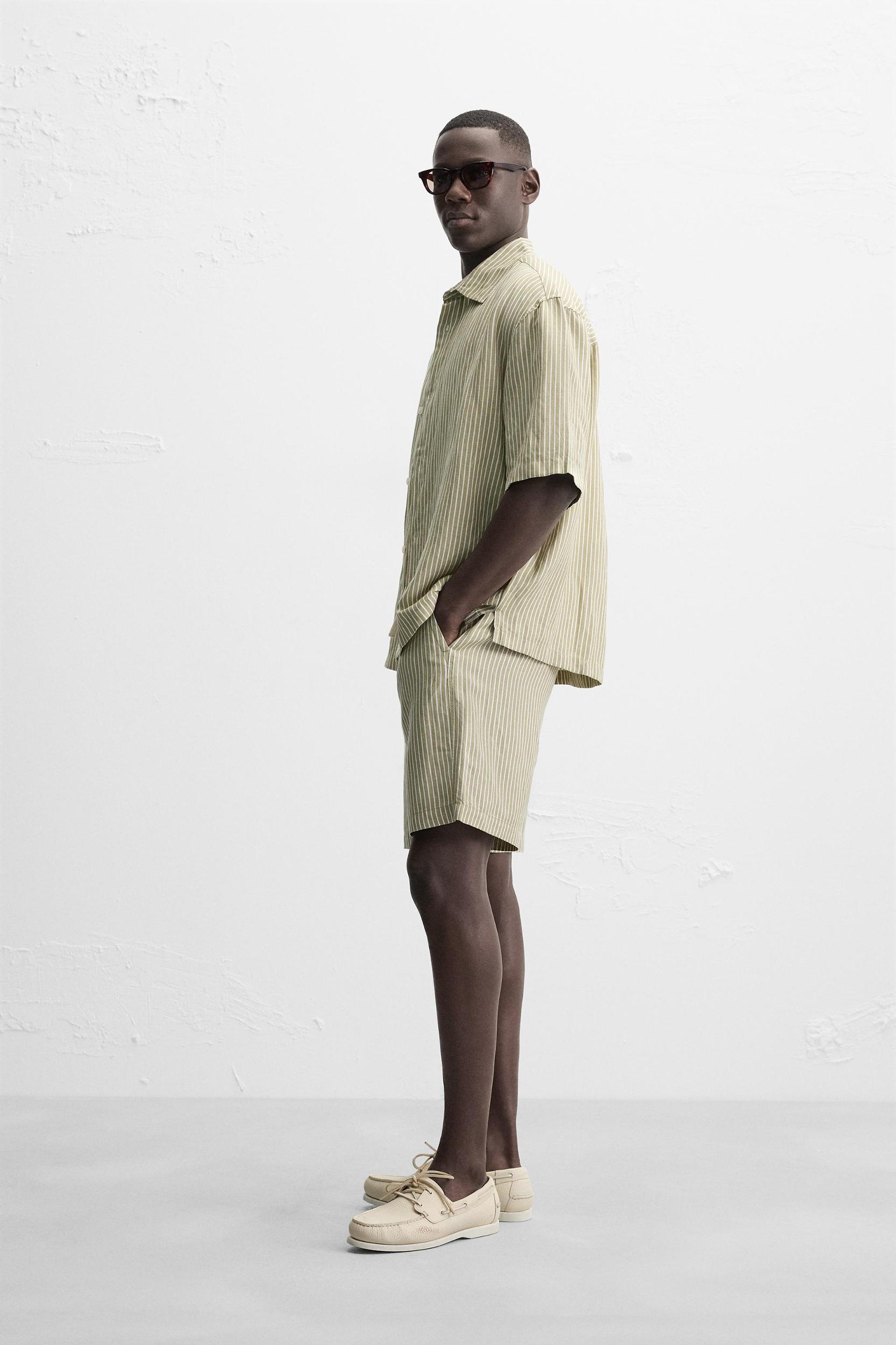 Relaxed fit shirt made of linen and viscose blend fabric. Lapel collar and short sleeves. Front button closure.