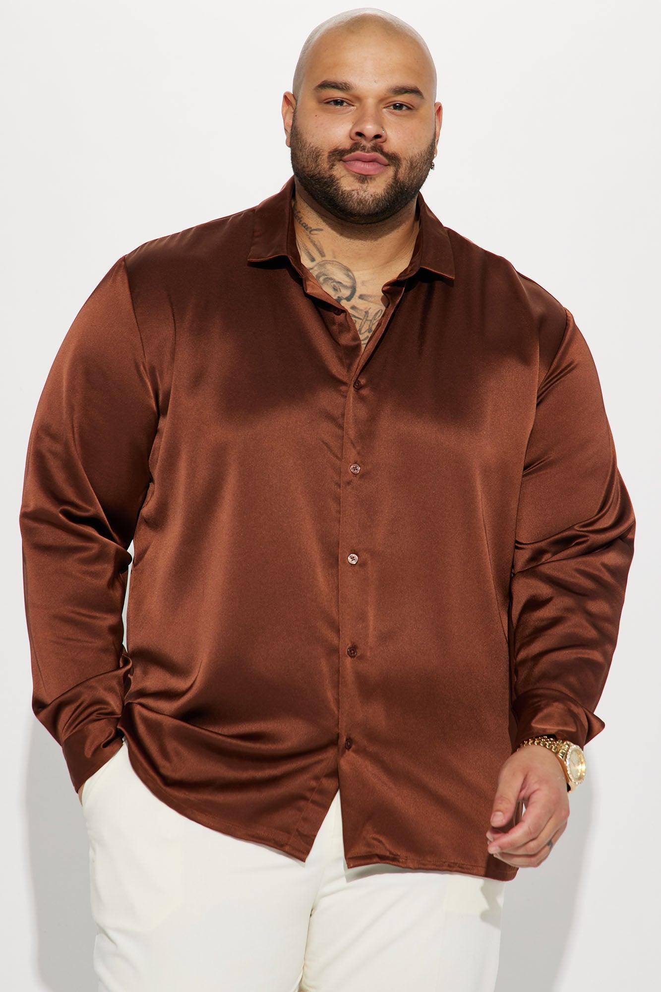 Model Height: 6'2 - Wearing Large Big & Tall: Height 6'3- Wearing XXXL Available In Black And Chocolate. Fold Down Collar Front Button Closure Long Sleeve 100% Polyester Imported California Proposition 65WARNING: Cancer and Reproductive Harm - www.P65Warnings.ca.gov.