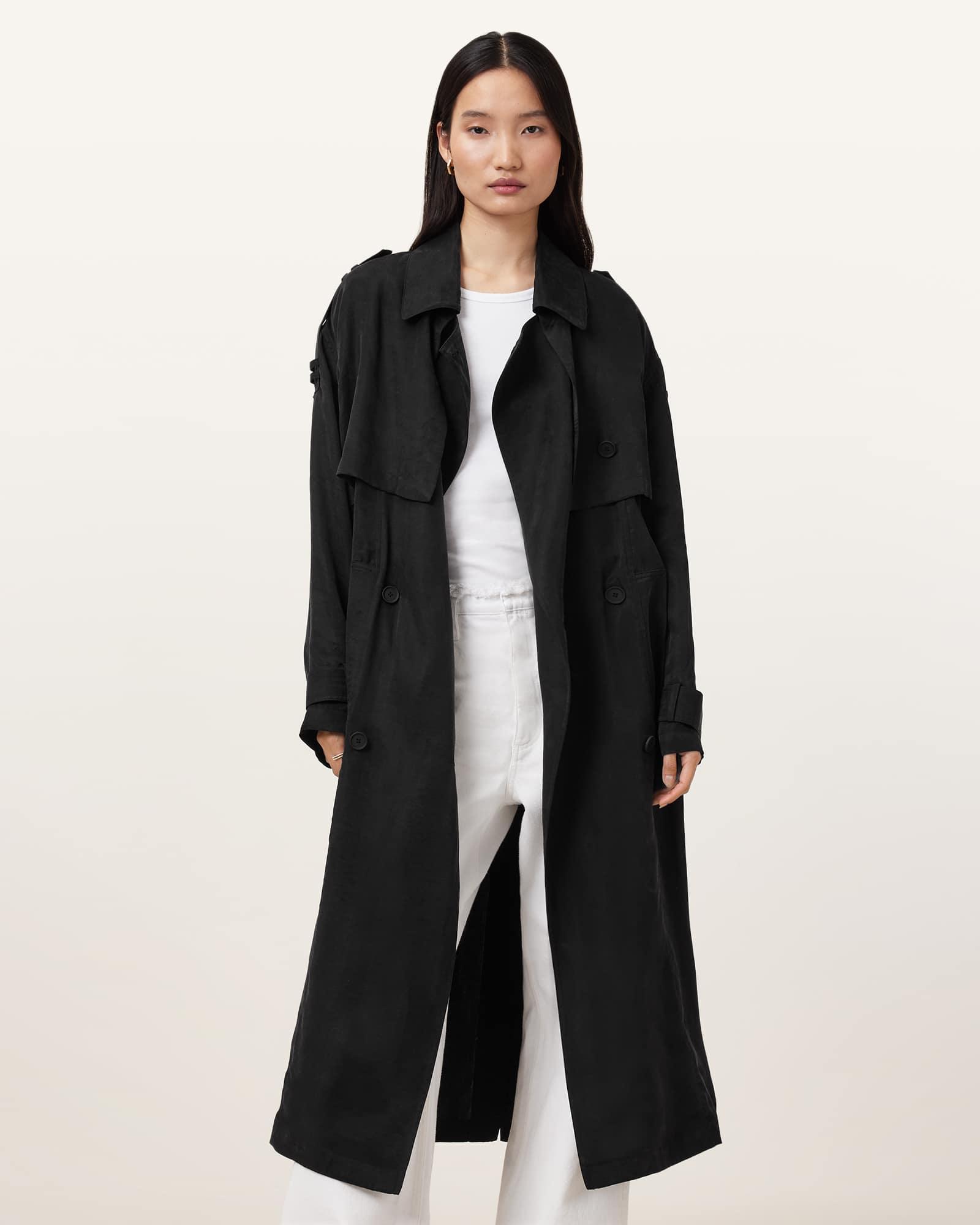 Linnie Lightweight Trench Coat Black | ALLSAINTS US