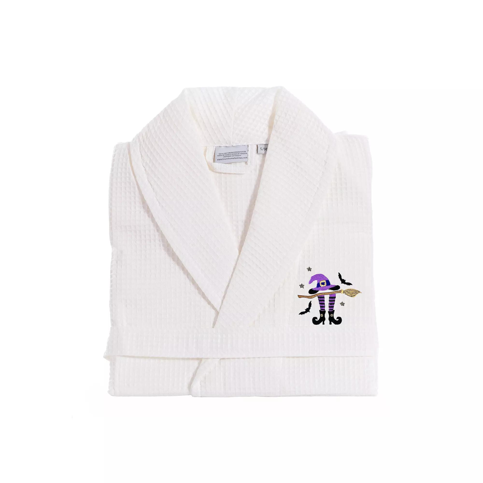 Bring holiday cheer with this fashionable Linum Home Waffle Weave Bathrobe, featuring a whimsical Witchs Hat, Broom, and Legs embroidery motif. Click this BED & BATH GUIDE to find the perfect fit and more! Bring holiday cheer with this fashionable Linum Home Waffle Weave Bathrobe, featuring a whimsical Witchs Hat, Broom, and Legs embroidery motif. Click this BED & BATH GUIDE to find the perfect fit and more! FEATURES As with all our products, these robes are crafted from thick, 100% genuine Turkish cotton, which becomes even softer with every wash The soft texture of the deep waffle waves is highly absorbent and dries quickly, keeping you cool and comfortable Embroidered with a witchs hat, broom, and legs design Two patch pockets and a belt Weight: 230 GSMSIZING Small / Medium: 20 across the shoulders, 47 long Large / XLarge: 25 across the shoulders, 49 longCONSTRUCTION & CARE 100% Cotton Turkish Machine wash Imported Manufacturers1-yearlimited warranty: For warranty information please click here Size: L/XL. Color: White. Gender: female. Age Group: adult.