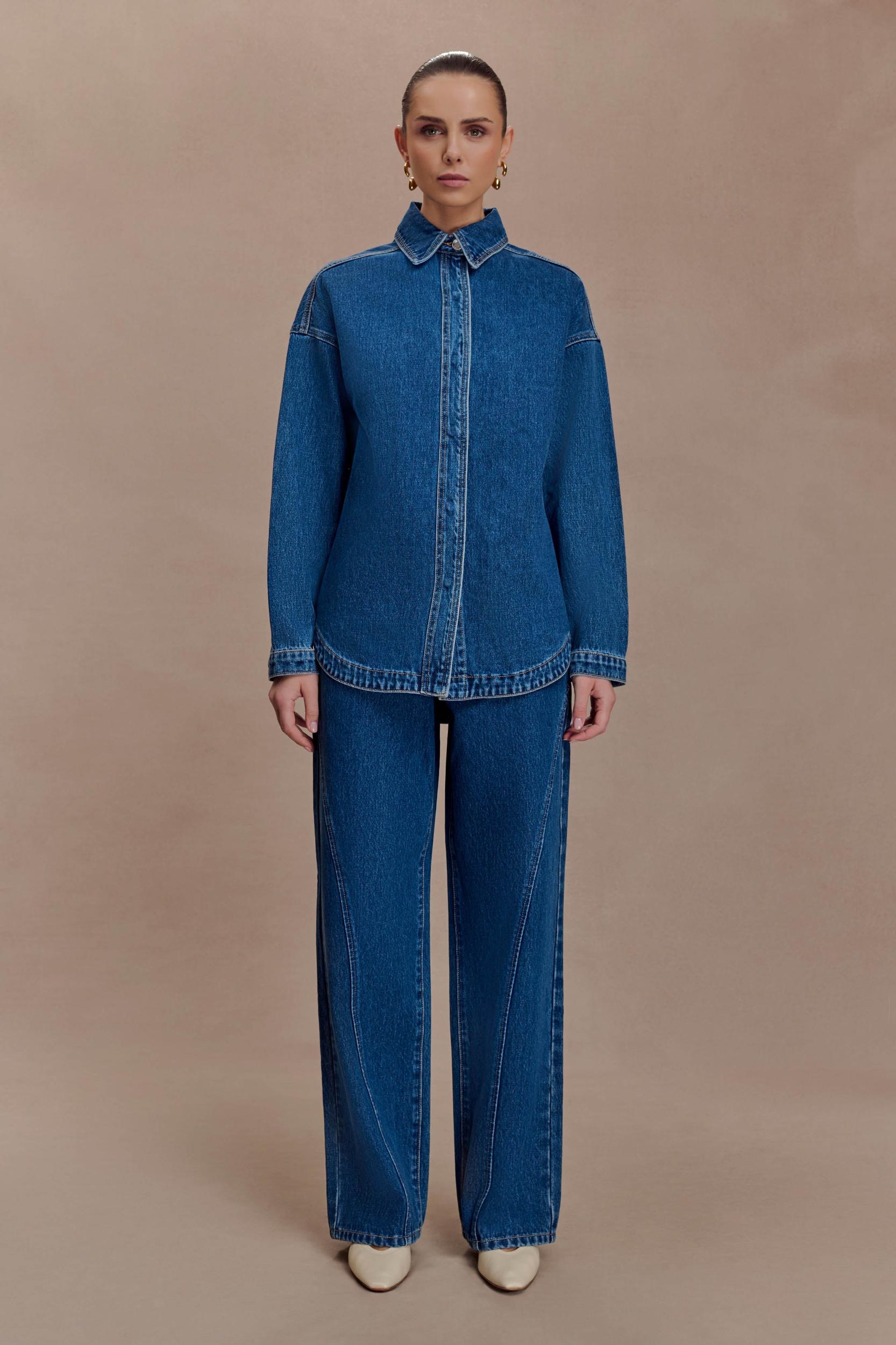 Refinement without excess. The GEORGETTE Mid Rise Paneled Denim Jeans are a contemporary update on a wardrobe staple. Designed with a mid-rise waistline and a clean waistband, they feature decorative front and back panel seams that contour the silhouette for a flattering finish. Functional front and back pockets add utility, while a fly front closure and back yoke ensure a classic denim construction. Versatile and polished, these jeans are an everyday essential elevated with thoughtful detailing. Please refer to our updated size guide for this style.