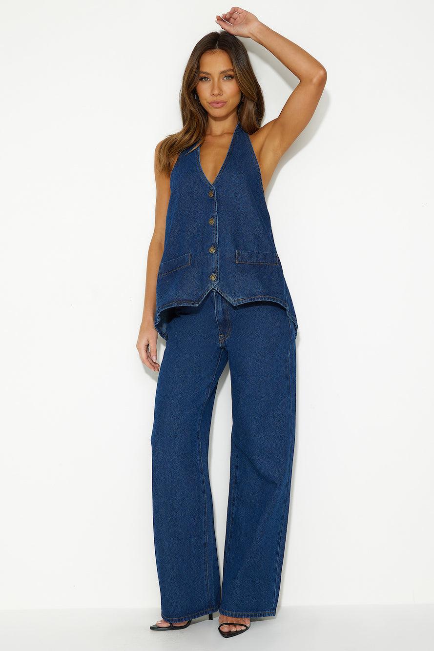 LIONESS Hills Halter Top Dark Denim