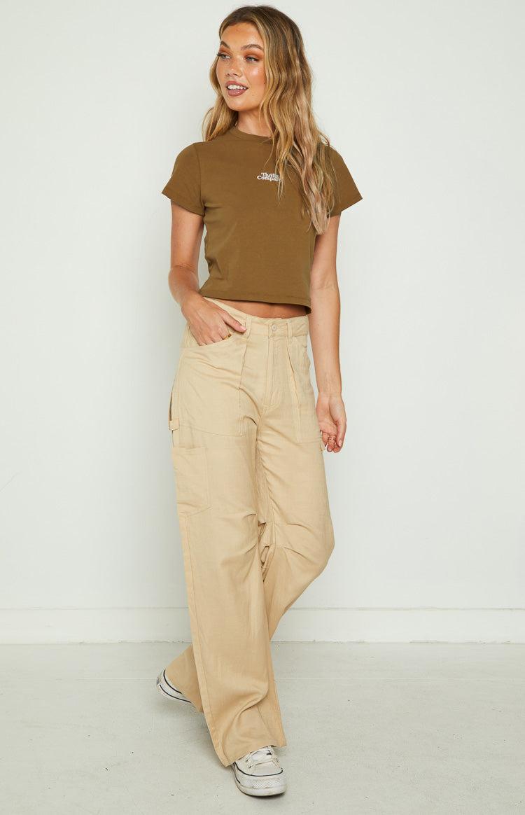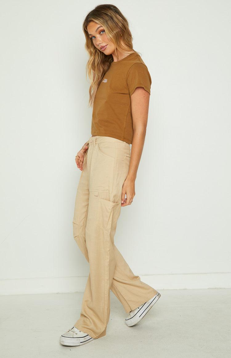 Beige Pants by Lioness These light-weight and ultra airy pants are perfect during the summer heat! Style with heels for a long lunch look or simply wear sneakers for cute 'n casual style! Cargo style pants Full length Wide leg Front and back pockets Zip at front with button closure Belt loops Unlined Light-weight Linen blend material without stretch Low rise fit - size down for a high waisted fit
