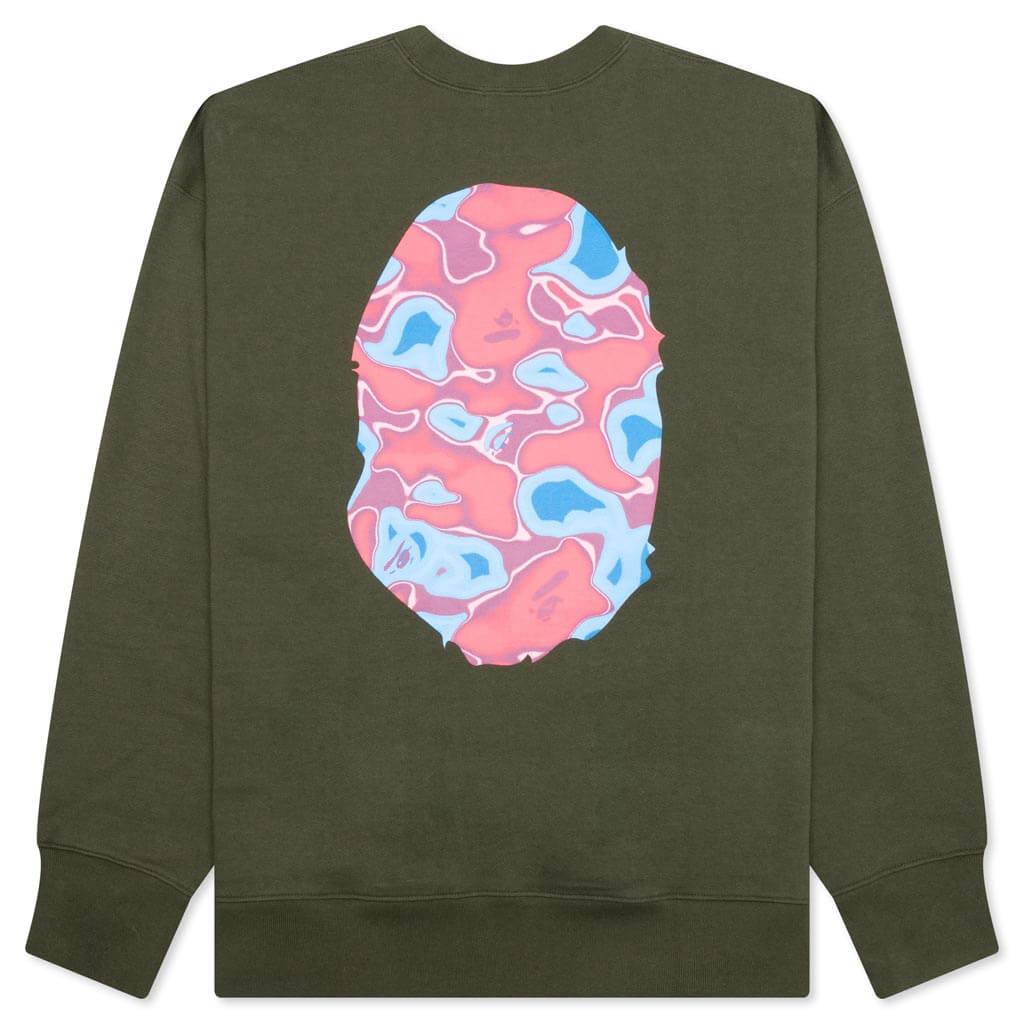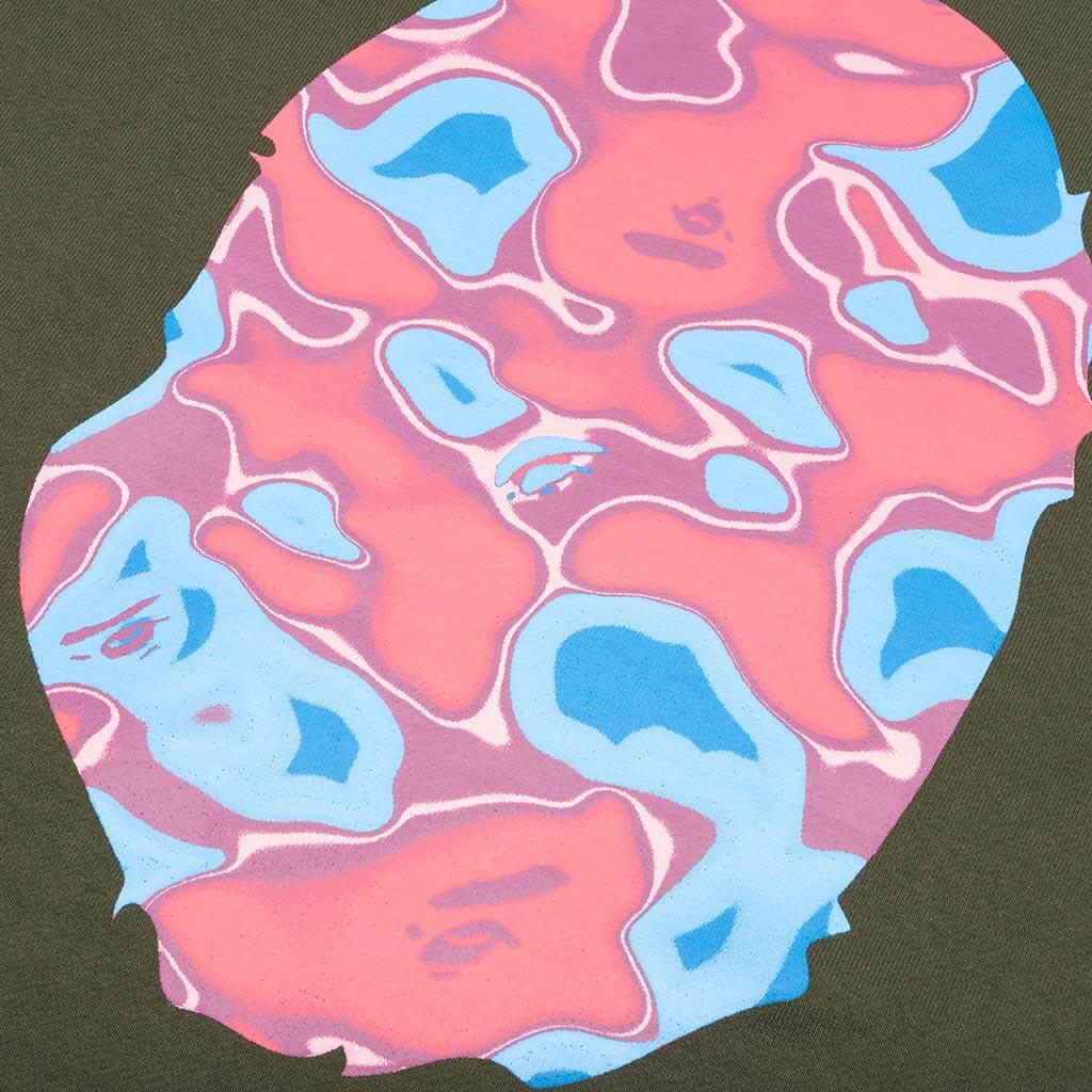 The A Bathing Ape Liquid Camo Ape Head Relaxed Fit Crewneck makes a statement in any apparel collection. The design features ribbed detailing on the trims. Screen-printed branding can be found at the front, while the camo graphics complete the look. 100% cotton Screen-printed branding Camo print Ribbed trims Style No: 001SWK301017M-OLD