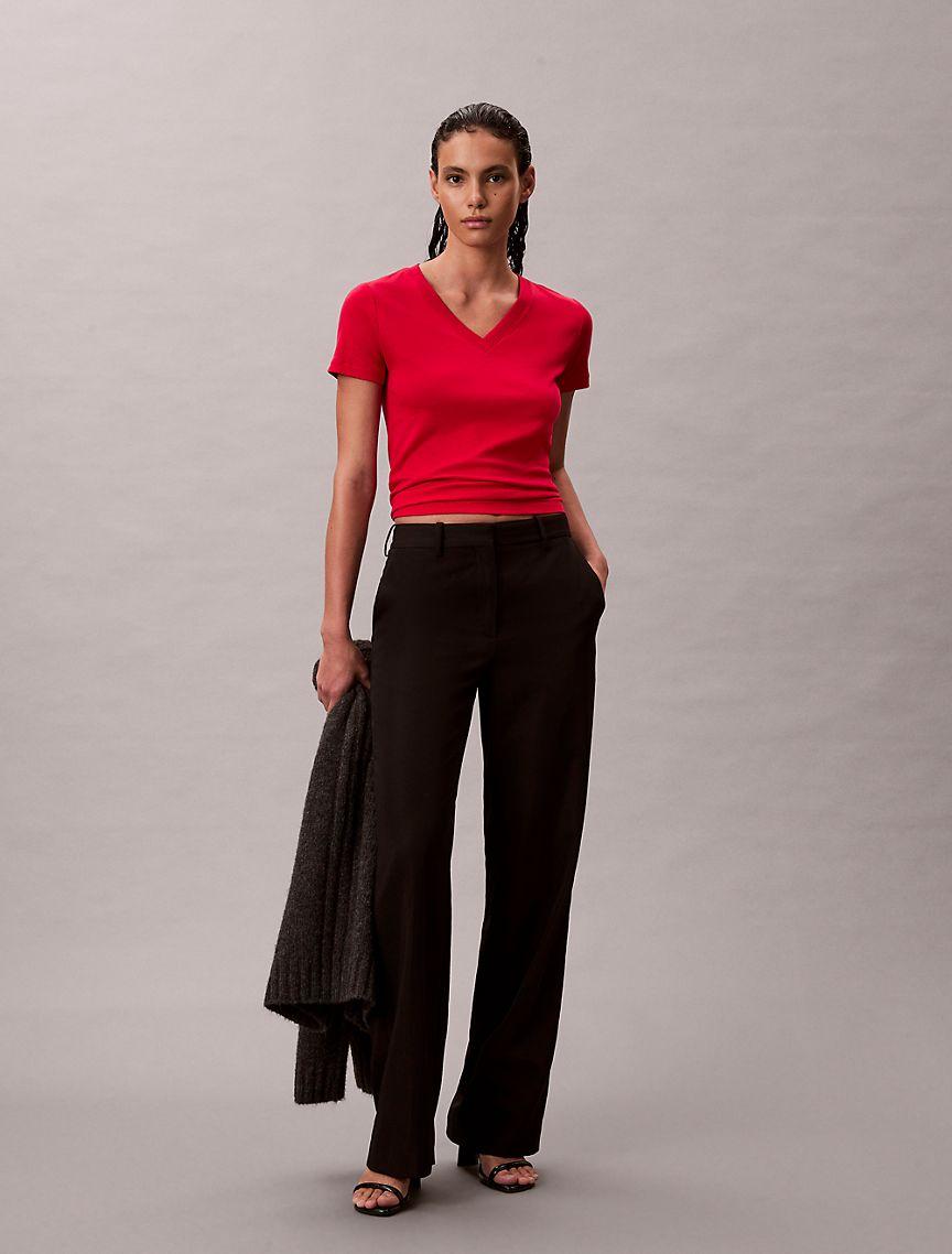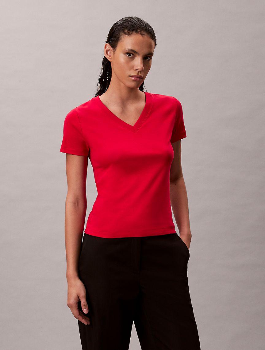 Supremely soft with a cool feel, this Calvin Klein t-shirt is crafted from liquid touch cotton for ultimate comfort. Cut in a relaxed fit, finished with a V-neck and short sleeves.