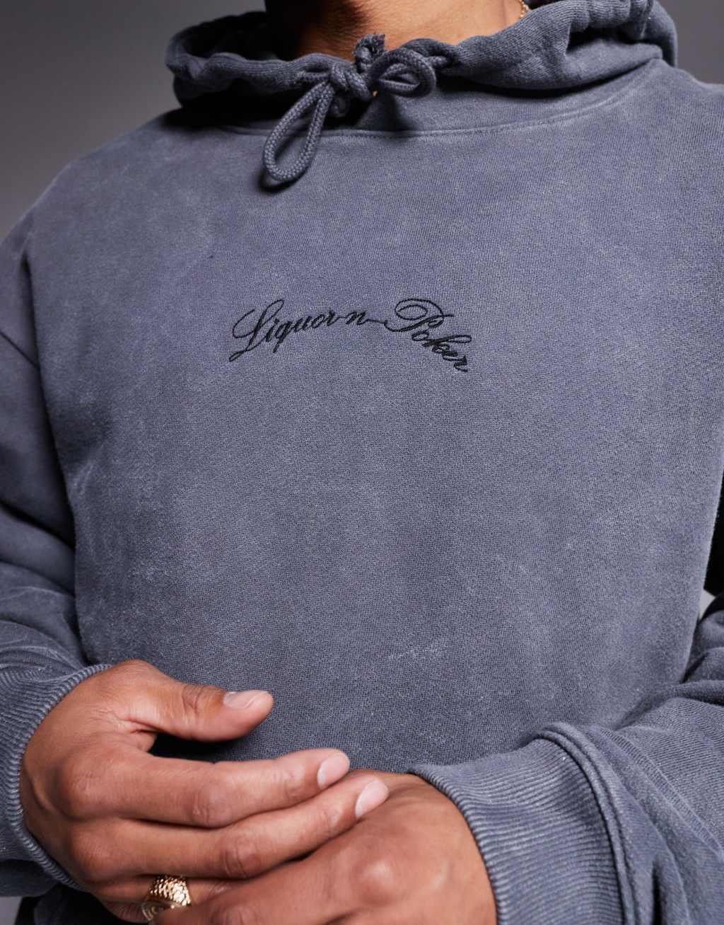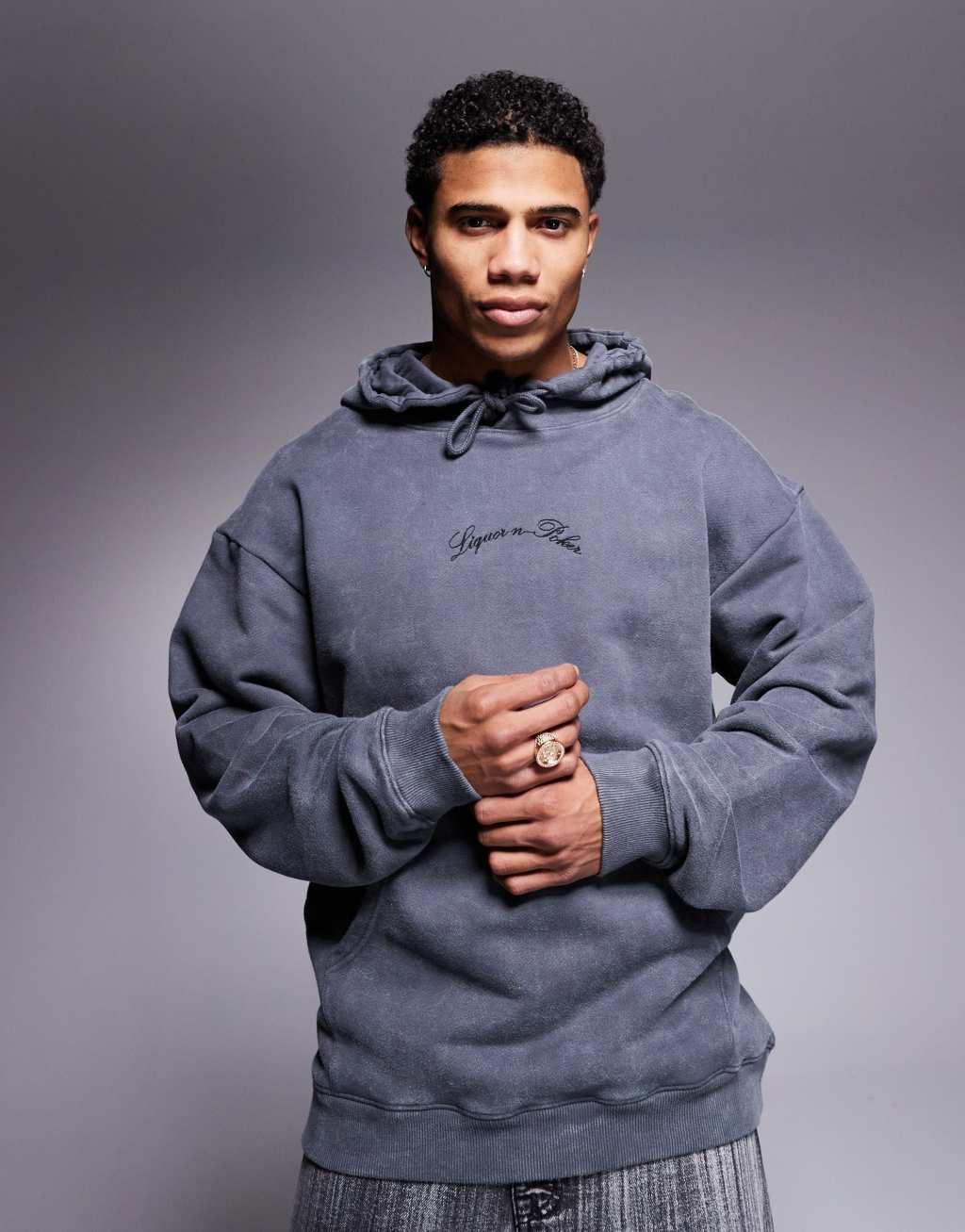 Liquor N Poker oversized hoodie in light gray acid wash