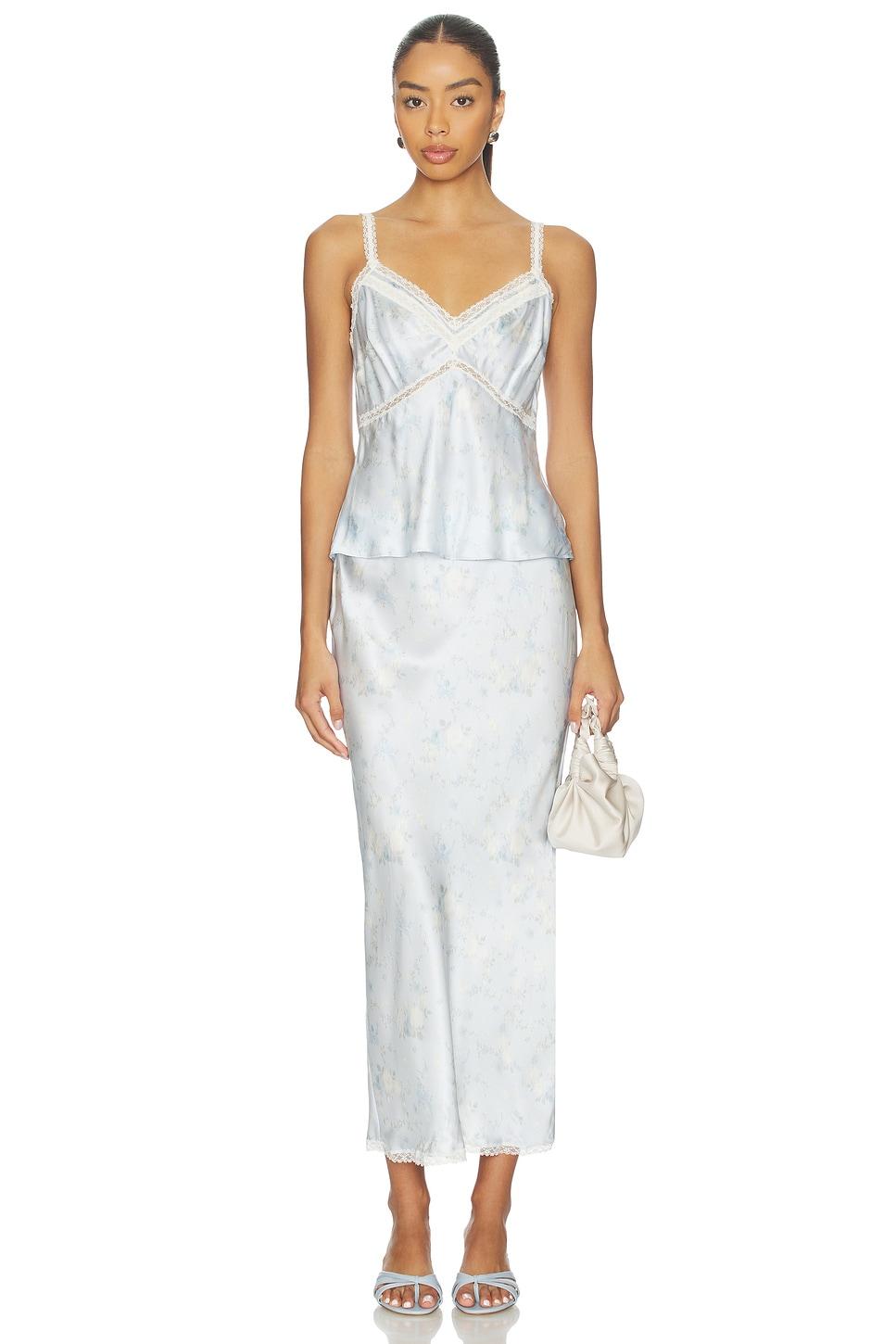 Self: 100% silkCombo: 100% polyester. Made in China. Dry clean only. Pull-on styling. Lace trim. Lightweight satin fabric. Garment is made with a semi-sheer fabric, undergarments can show through. Item not sold as a set. Revolve Style No. LESH-WS369. Manufacturer Style No. T1450-3039.
