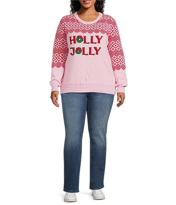 From Lisa International Plus, this sweater features: Sweater knit fabrication Crew neckline Long sleeves with cuffs Embroidered appliqué detail at front body Loose fit Straight ribbed hemline Pullover construction Acrylic; exclusive of decoration Hand wash Imported.