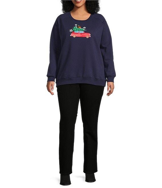 Lisa International Plus Size Crew Neck Long Sleeve Merry Christmas Sweatshirt