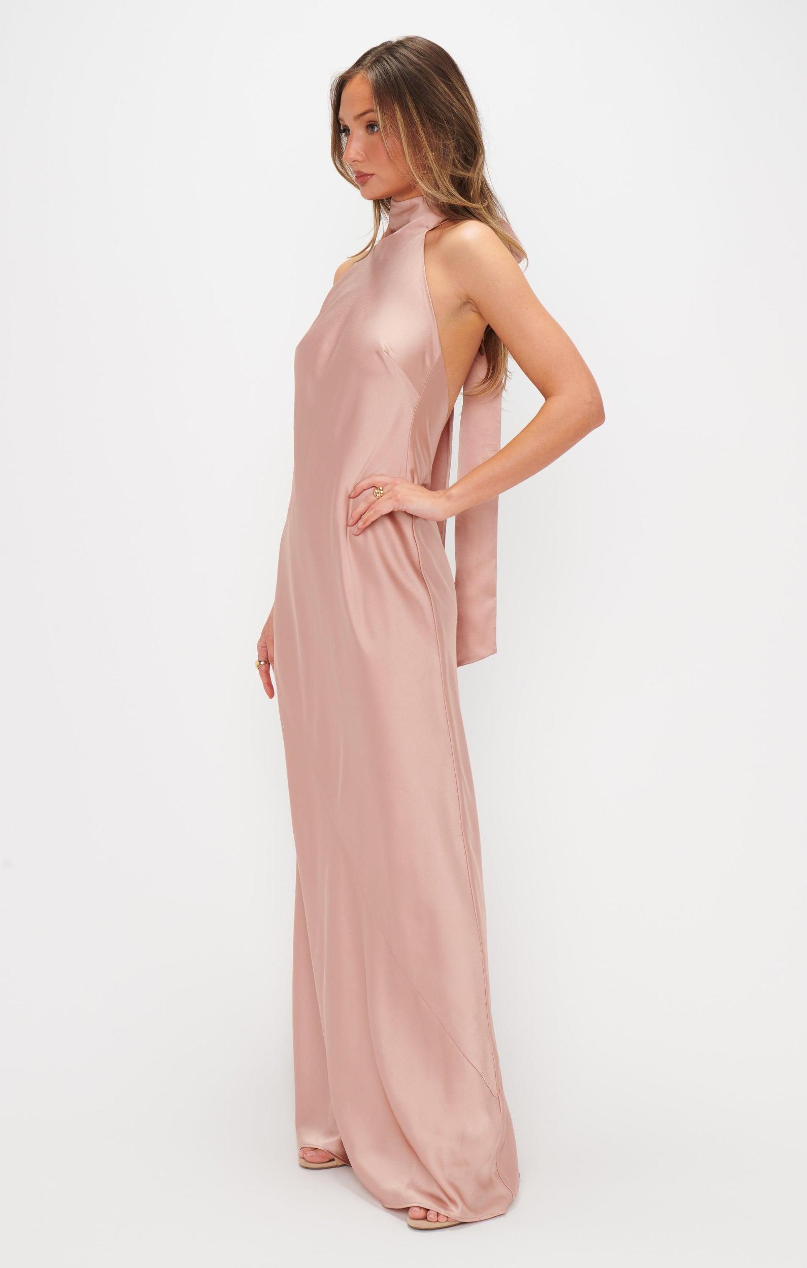 Lisa Maxi Dress ~ Rose Gold Luxe Satin