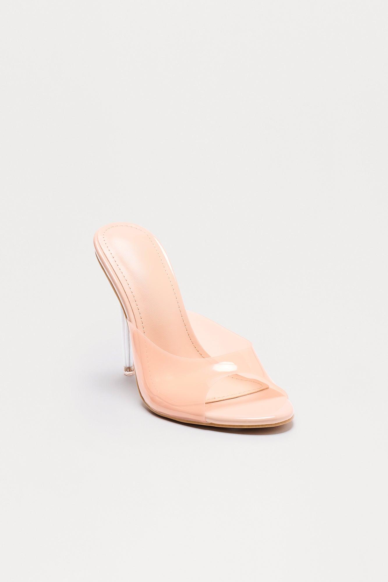 Available In Beige. Heeled Sandals PVC Strap Peep Toe 4.5" Ultra High Heel Imported