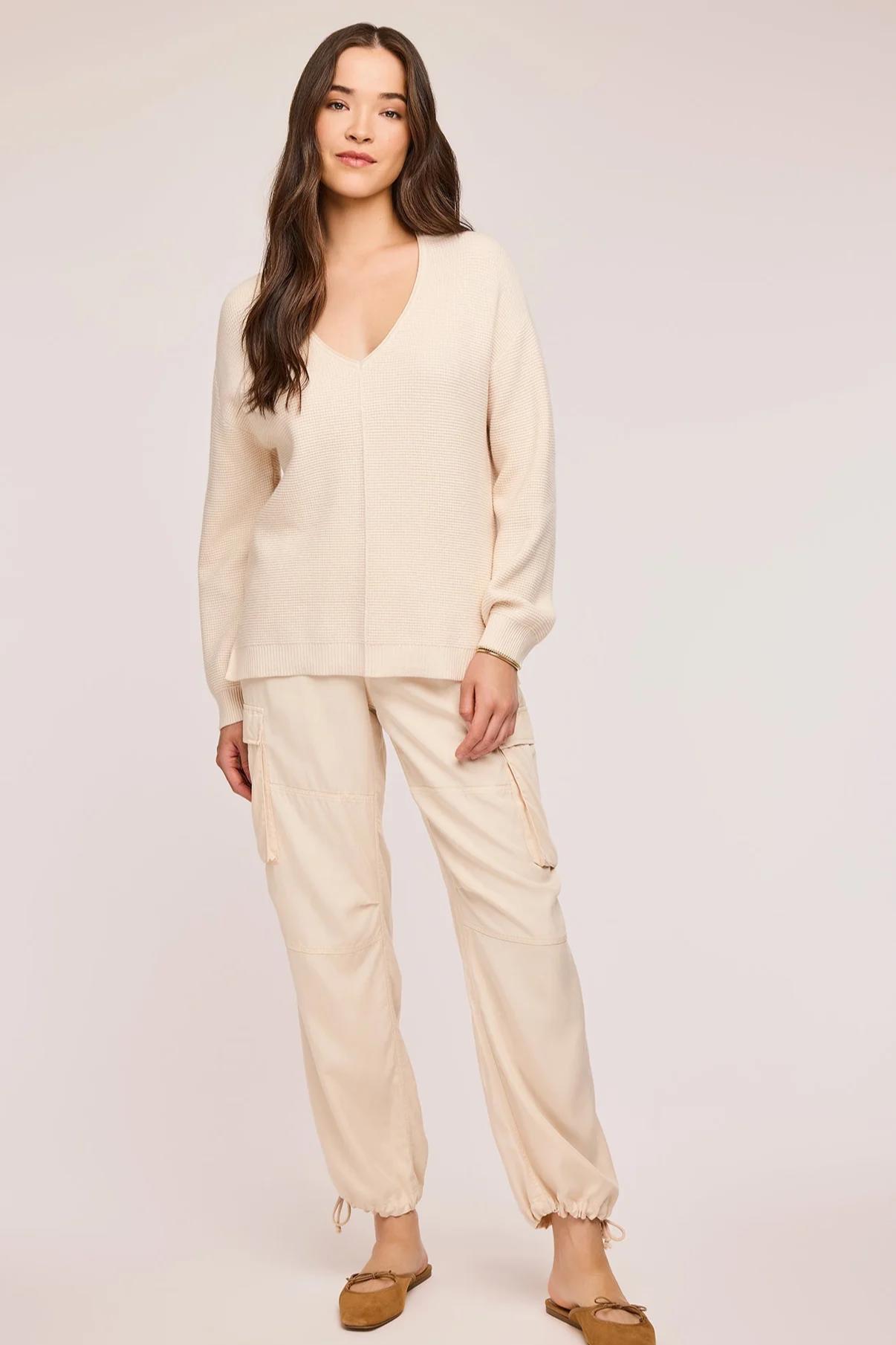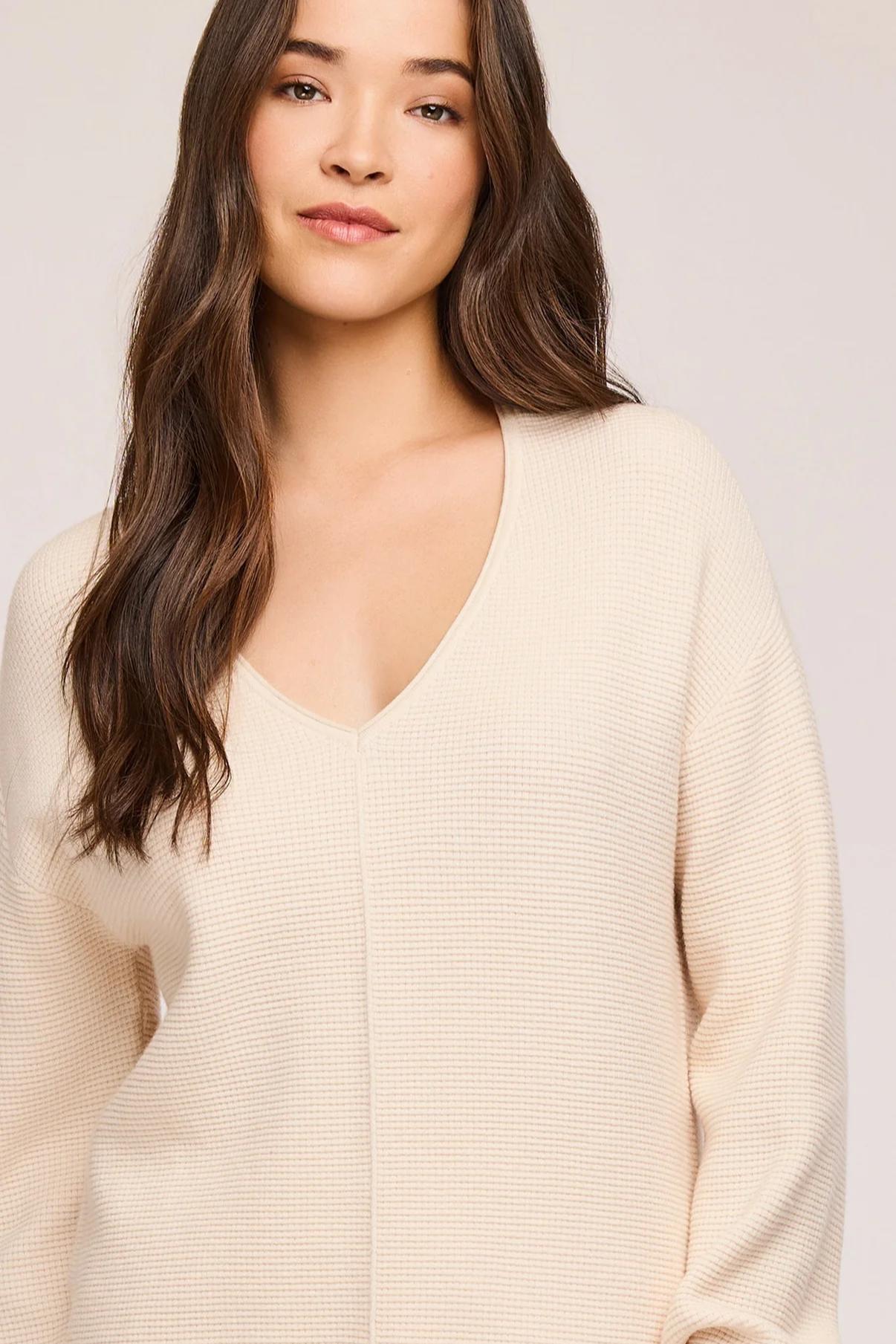 The Lisbon sweater is made of a soft yarn in a waffle knit pattern. Features include side slits and exposed seam details. Details Oversized Fit Waffle knit pattern Side slits