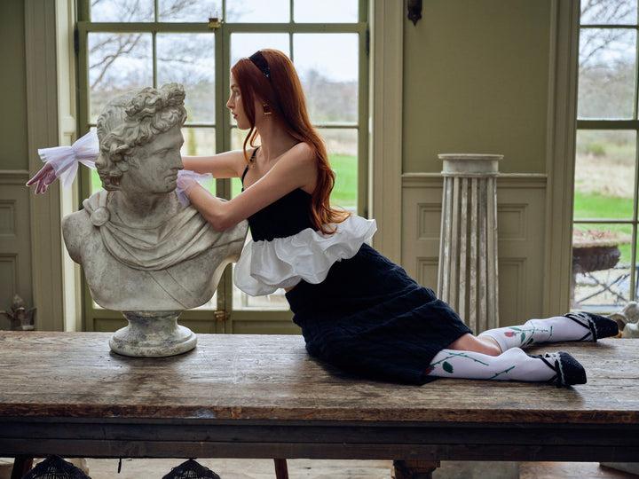 For an effortless fall look, the Lise black midi skirt is both modern and timeless. Crafted in a chunky cable knit, this knit skirt spotlights classic sweater rib trims at the hem and waist. Pair it with the Lise Knit Tank Top for a co-ord skirt set.