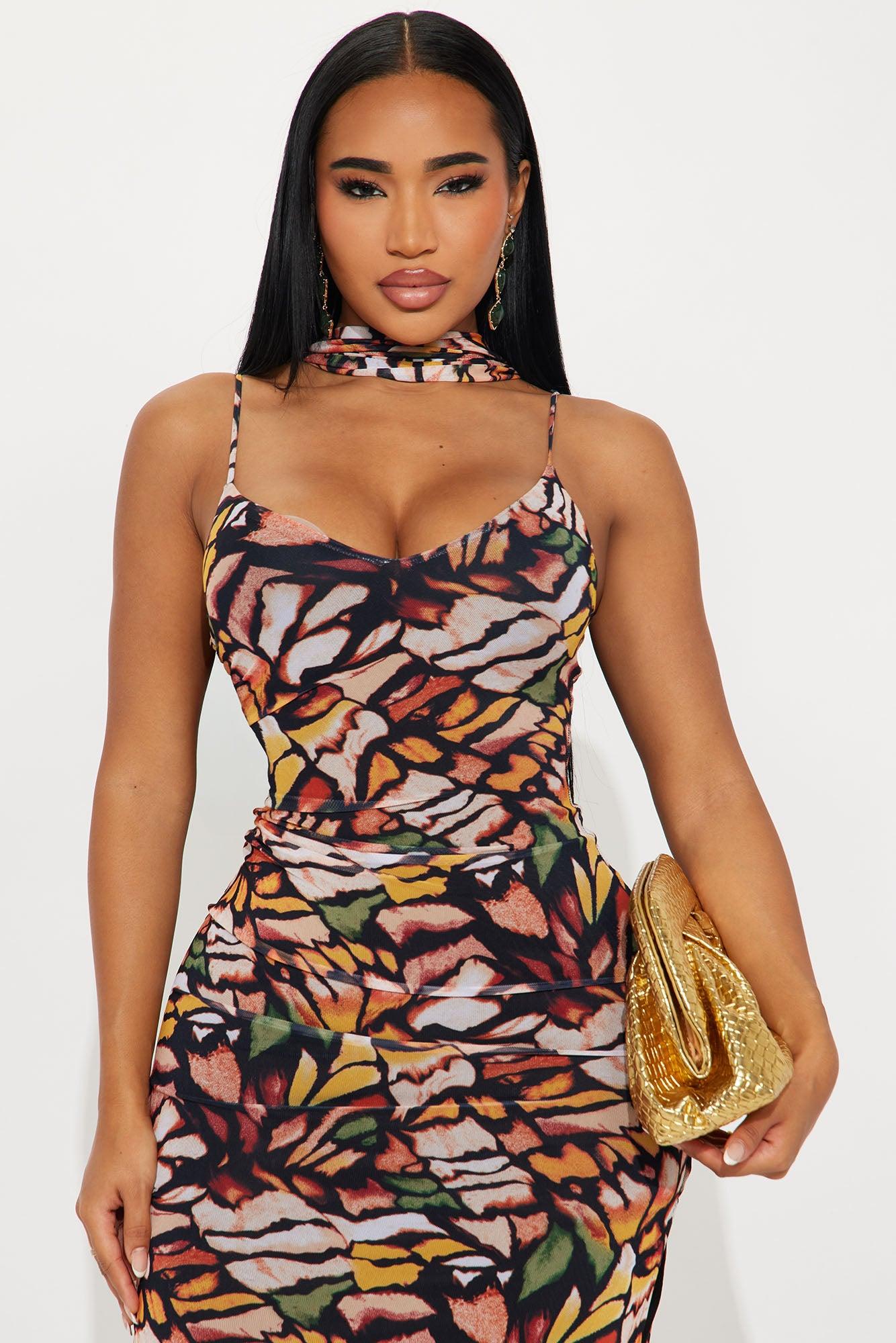 Available In Orange/combo. Butterfly Print Mesh Maxi Dress Adjustable Spaghetti Straps Scarf Detail V-Neckline Ruche Detail Lined Stretch Side Slit Disclaimer: Print Placement May Vary. Self: 95% Polyester 5% Spandex Lining: 100% Polyester Imported