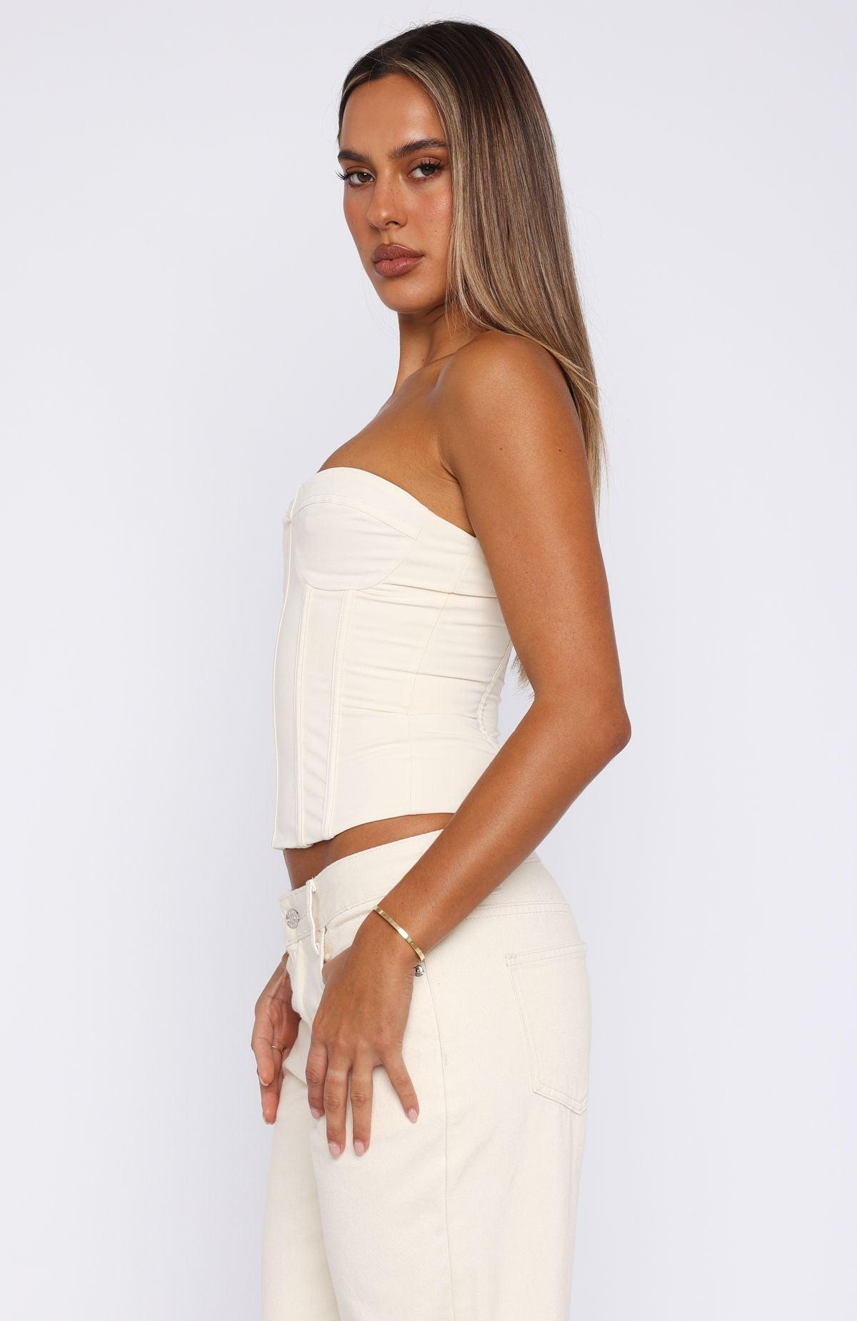 We are obsessing over the Little Lies Bustier in Off White. Features a strapless design, bust underwire, faux boning in bodice, semi-cropped and zipper centre back with hook and eye closure. Complete the look with jeans, gold accessories and a shoulder bag for a look we love! 50% Polyester 47% Rayon 3% Spandex Mik is 171cm & wears an S Sophie is 167cm & is wearing an XS