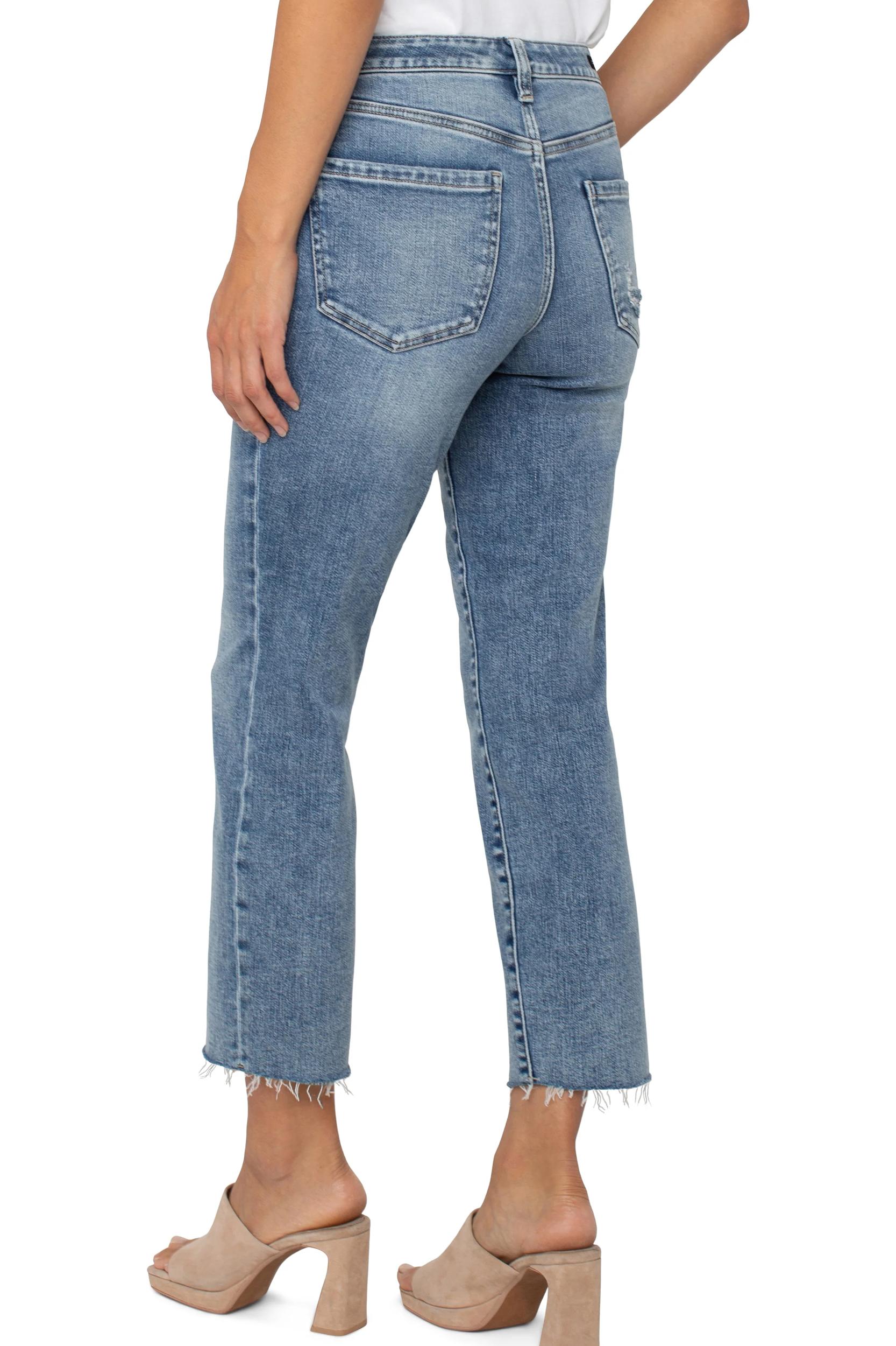 Introducing the Liv Relaxed Skinny with Cut Hem - the ideal combination of a slim and skinny fit. With its medium wash and cut hem, this trendy style adds a touch of fashion to any outfit. Create a versatile, on-the-go look by pairing it with a blouse or sweater.