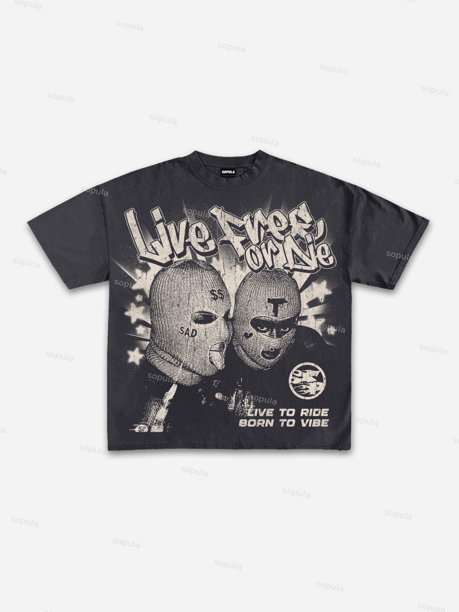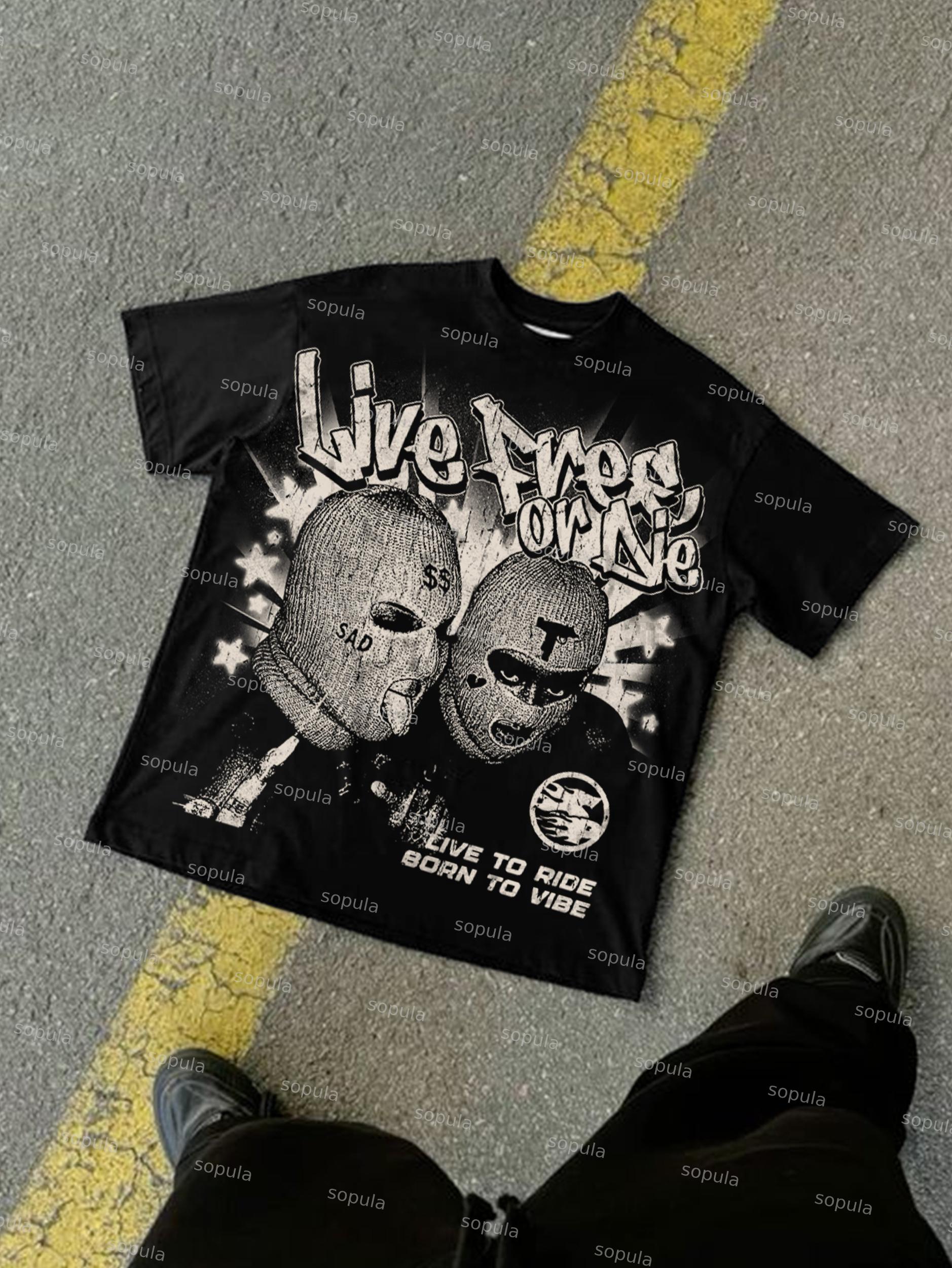 Live Free Or Die Outlaw Character Vintage Graphic Cotton T-shirt. SPU: CP-235919-WJY Fabric: 100% Cotton Fabric Weight: 180g Pattern: Outlaw Character Graphic Process: Printed Gender: Women,Men Season: Summer Size Range: S-3XL Color: Black,Grey,Apricot,White Print Position: Front