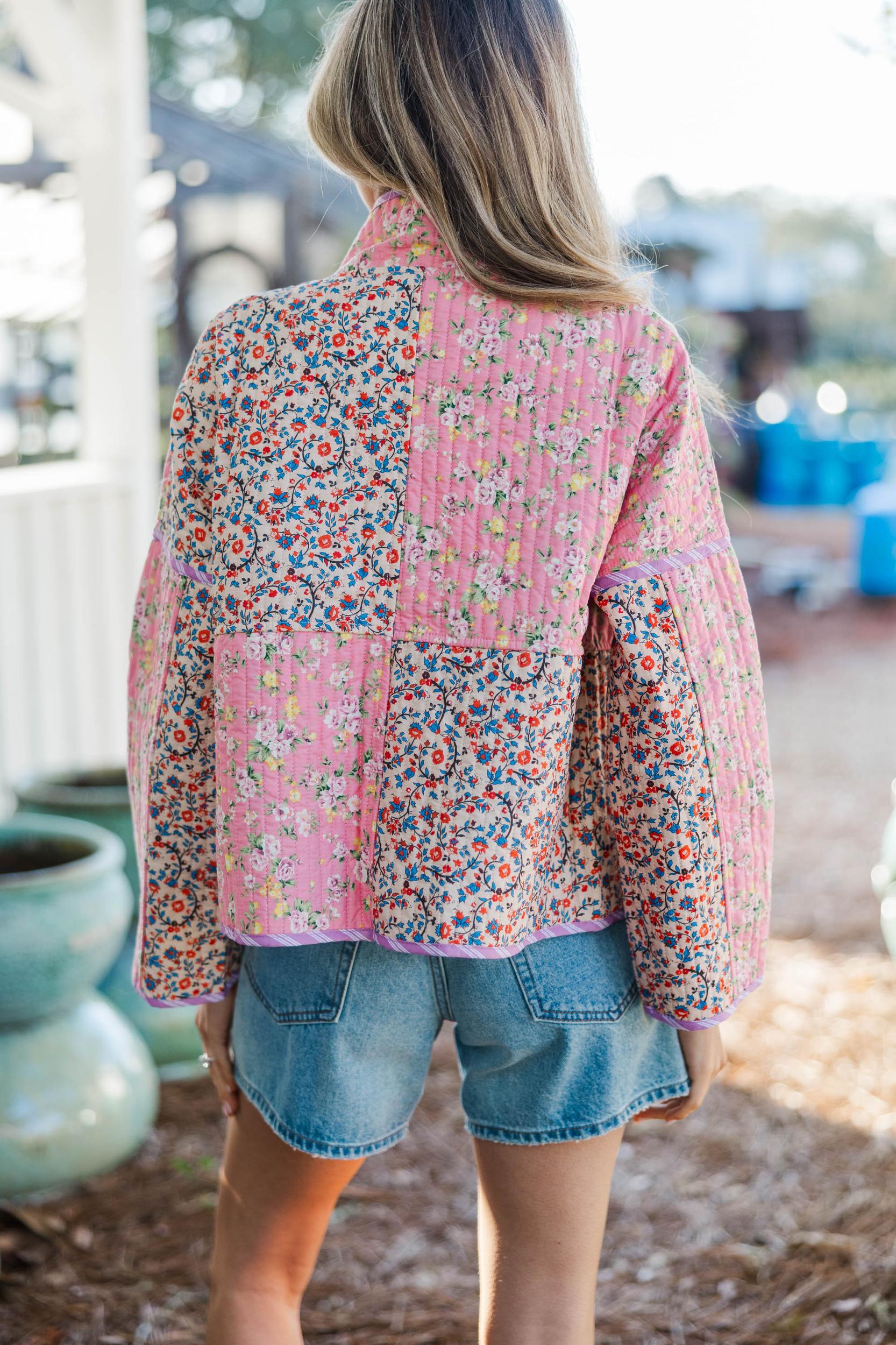 This quilted jacket brings a playful twist to everyday layering with its mix of charming prints and cozy feel. Designed to add personality to even the simplest outfits, it’s perfect for throwing on over tees or lightweight sweaters. An easy favorite for casual days when you want comfort with a little extra flair. Collared neckline Button front closure Long sleeves Straight hemline No stretch London is wearing the small.