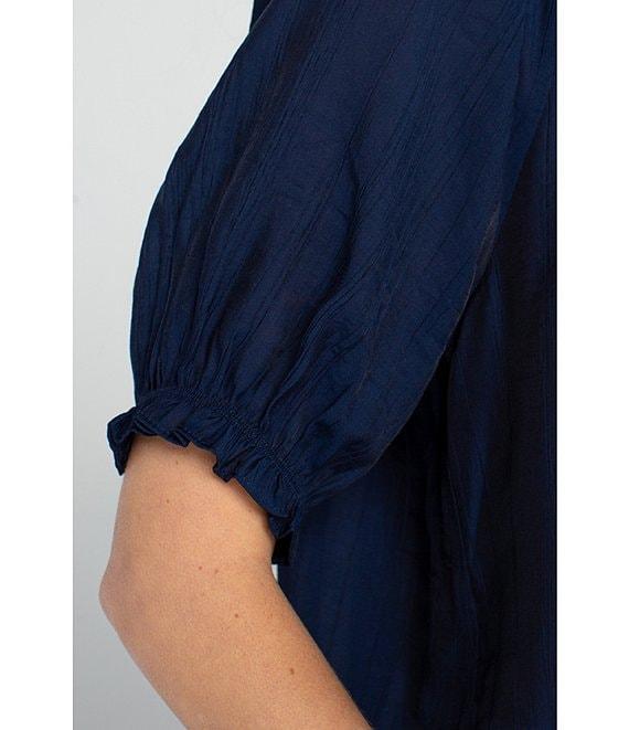 Liverpool Los Angeles Crinkle Woven Split V-Neck Short Sleeve Blouse