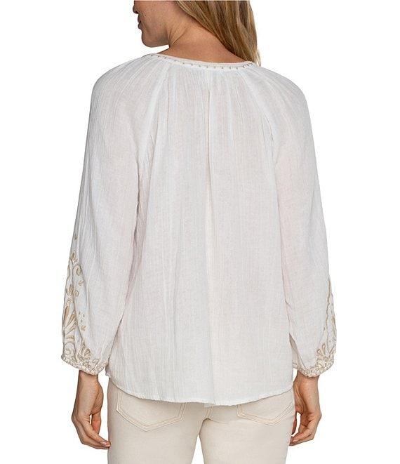 From Liverpool Los Angeles, this top features:Split V necklineLong sleevesEmbroidered detailPullover constructionApprox. 26" lengthCottonMachine wash/dry flatImported.