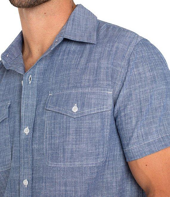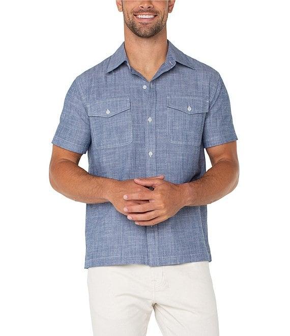 From Liverpool Los Angeles, this shirt features: Chambray wash fabric Spread collar Short sleeves Button-front closure Two front flap pockets Polished look that’s perfect for any occasion Soft, breathable fabric for all-day comfort Cotton Machine wash/tumble dry Imported.