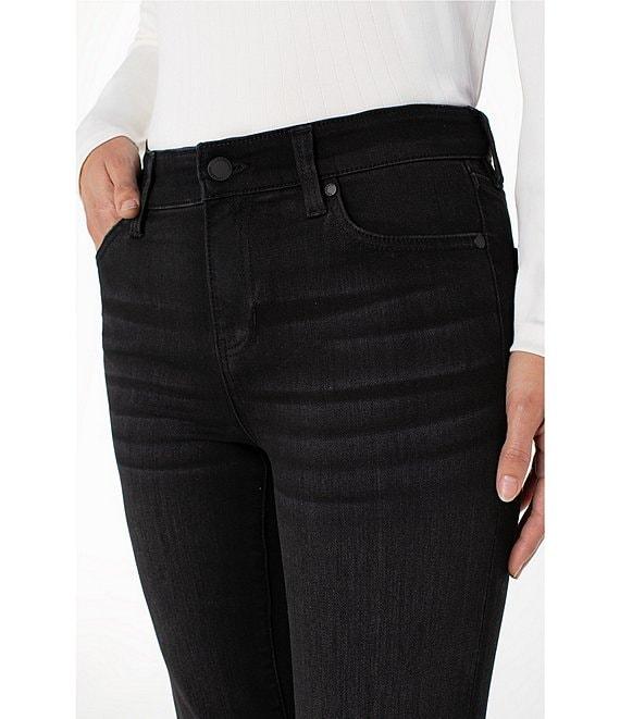 From Liverpool Los Angeles, these jeans feature: Stretch denim fabrication Belt loops 5 pocket styling Wide leg silhouette Ankle length Front button and zipper closure Approx. 30" inseam, 21.5" leg opening, front rise: 9.37", back rise:14.25" Cotton/recycle polyester/rayon/lycra Machine wash Imported.
