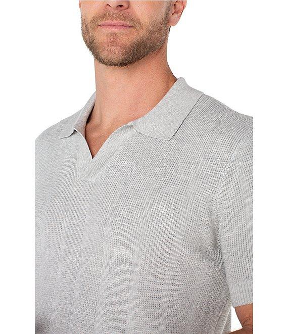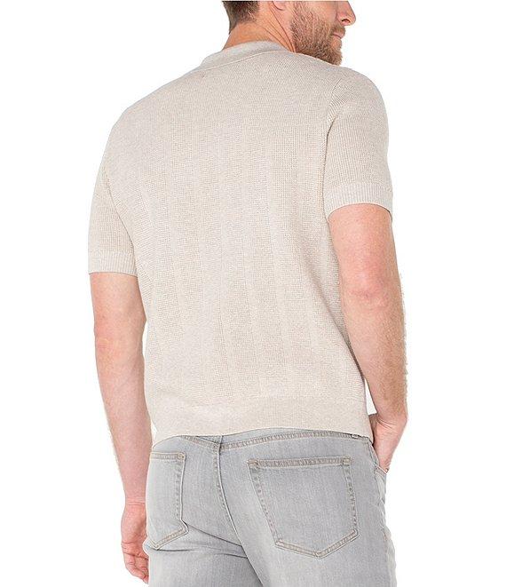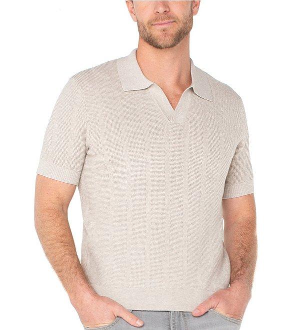 From Liverpool Los Angeles, this polo shirt features: Johnny collar Short sleeves Ribbed trim Pullover construction Laid-back yet polished feel Tailored fit 12-gauge yarn for a clean, modern look Tailored fit Cotton/acrylic/nylon Machine wash/tumble dry Imported.