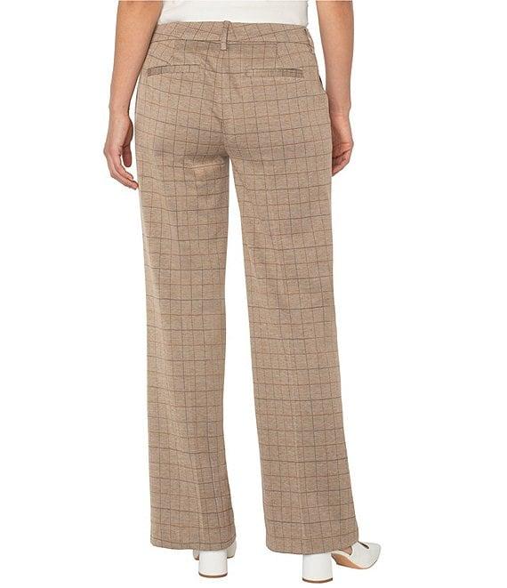 From Liverpool Los Angeles, these pants feature: Knit jacquard fabrication Grid check pattern Belt loops Front side functional & back pockets Mid rise Wide leg Full length Front zipper, hook-and eye closure Approx. 31" inseam, 21" leg opening, front rise:10.5", back rise: 15.5" Polyester/rayon/spandex Machine wash Imported.