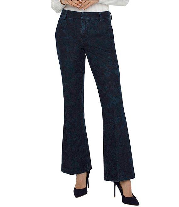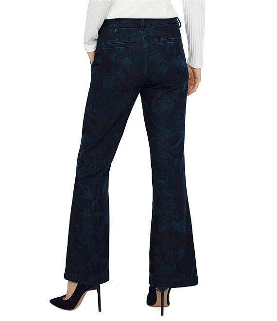 From Liverpool Los Angeles, these jeans feature: Stretch denim fabrication Flare leg silhouette Floral print Mid rise Belt loops Welt pockets Ankle length Front zipper, hook-and eye closure Approx. 31" inseam, 21.5" leg opening, 9 1/8" rise Cotton/polyester Machine wash Imported.