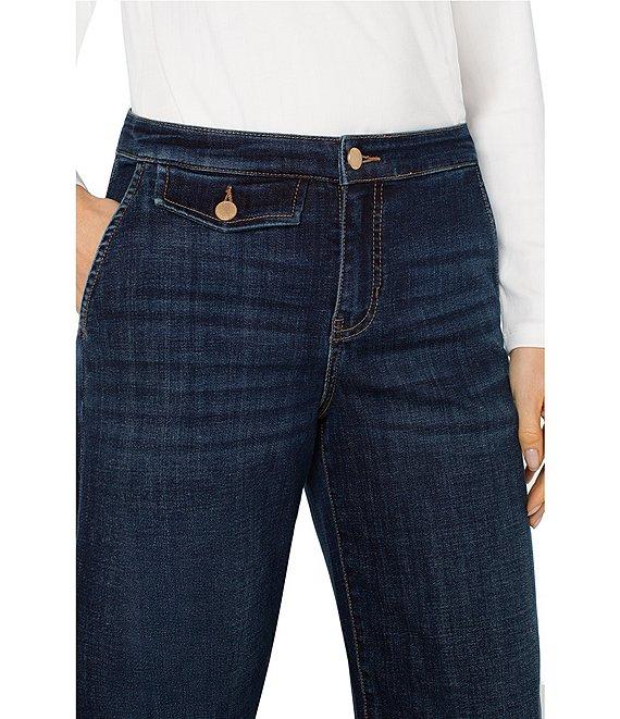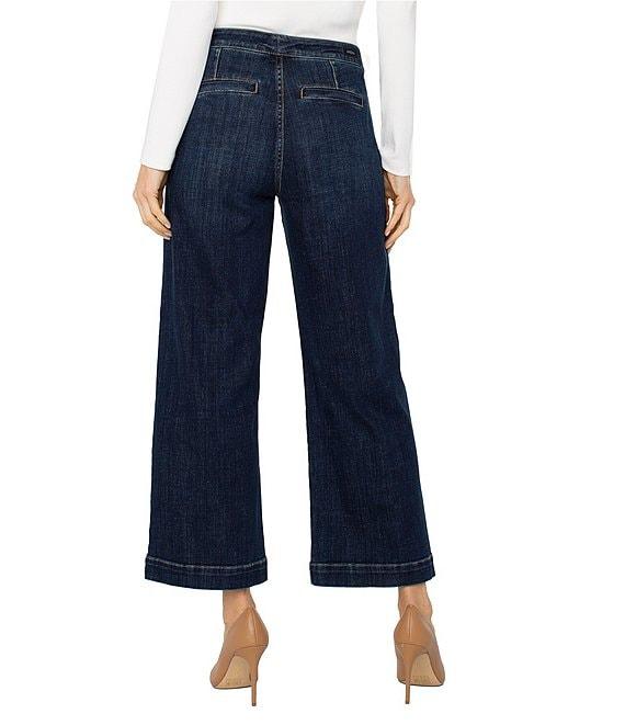 From Liverpool Los Angeles, these jeans feature: Stretch denim fabrication Wide leg silhouette Mid rise Side functional pockets & back welt pockets Cropped length Approx. 27" inseam, 20.25" leg opening, front rise: 10.125", back rise:14.75" Front button and zipper closure Cotton/lyocell/polyester/elastane Machine wash cold/tumble dry low Imported.