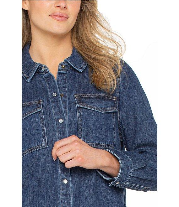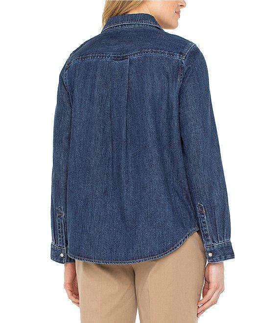Liverpool Los Angeles Petite Size Denim Point Collar Long Sleeve Button Down Shirt