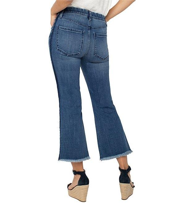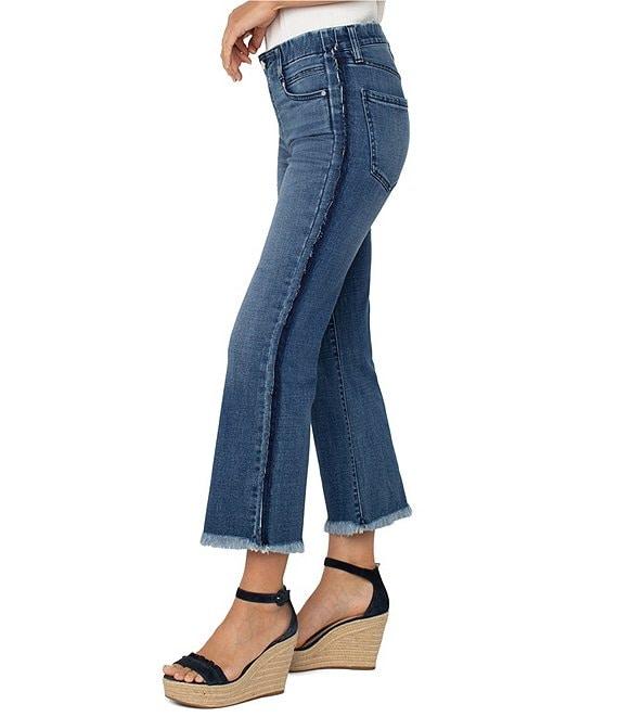 From Liverpool Los Angeles Petite, these jeans feature: Denim fabrication Mid rise Flare leg Belt loops 5 pocket styling Fray shadow on the side seam Cropped length Pull on waist with faux fly detail Approx. 23.5" inseam; 14.375" leg opening Cotton/rayon/polyester/spandex Machine wash Imported. Look your best in this stylish and timeless silhouette, the Gia Glider Crop Flare - a must-have for every wardrobe. With a subtle fray shadow on the side seam, this versatile piece can be dressed up or down for any occasion. Elevate your style by pairing it with your go-to sneakers for an effortless, cool vibe.