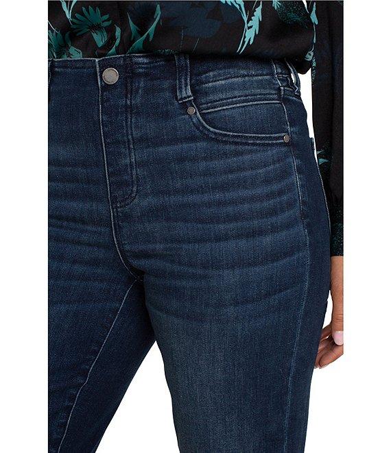 From Liverpool Los Angeles Petite, these jeans feature: Silky soft stretch denim fabrication Straight slim leg silhouette Belt loops 5-pocket style Functional front and back pockets Pull-on construction with one button Approx. 27" inseam; 14.5" leg opening; 9 3/8" front rise; 14 3/4" back rise Cotton/polyester/elastane Machine wash/tumble dry Imported. The Gia Glider has functioning pockets and allows for zero fuss Shown here in our silky soft denim, the slim gives you just the right amount of room with a sleek and sophisticated look. We think of these perfect alternative fit for those who need a break from a skinny.
