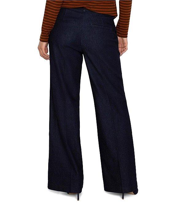 From Liverpool Los Angeles Petite, these pants feature: Polished denim fabrication Trouser silhouette Mid-rise Wide leg Belt loops at waist Pleated front Two side pockets & Two welt back pockets Elevate your wardrobe with a combination of sophistication and comfort that only denim can offer Zipper/hook & bar closure Approx. 29" inseam, 22.25" leg opening; approx. 9.125" front rise; 14.625" back rise Cotton/T400/polyester Machine wash/dry flat Imported.