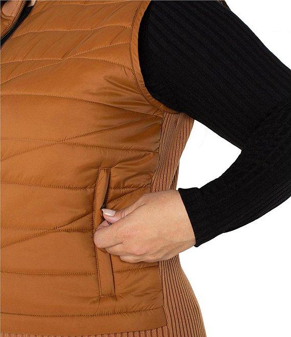 From Liverpool Los Angeles Plus, this vest features: Quilted fabrication Mock neckline Sleeveless Side pockets Upgrade your winter ensemble with our quilted puffer vest Crafted to ensure warmth and style, these vests are your new go-to for chilly weather Straight ribbed banded hemline Center front zipper closure Approx. 26.5" length Modal/cotton/nylon Machine wash cold /dry flat Imported.