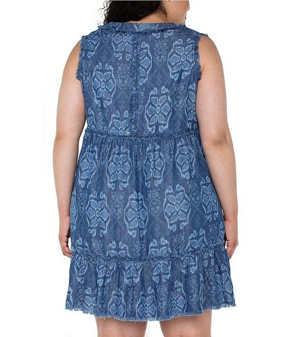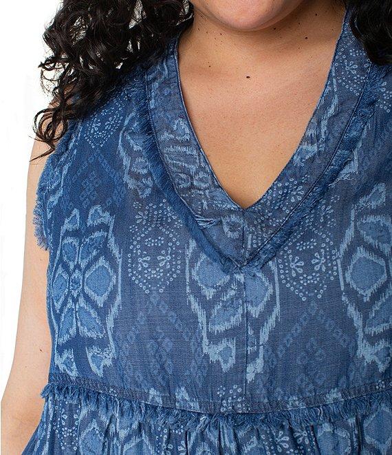 From Liverpool Los Angeles Plus, this dress features: Shift silhouette V-neckline Sleeveless Fray detail Side pockets Tiered hem Pullover construction Approx. 38.5" length Lyocell Machine wash cold/dry flat Imported. This beautiful sleeveless v-neck ruffle fray dress is ideal for everything from casual beach days to garden parties. This dress can be dressed up with heels or kept laid-back with sandals. Throw on a denim jacket and you're good to go