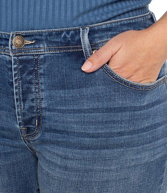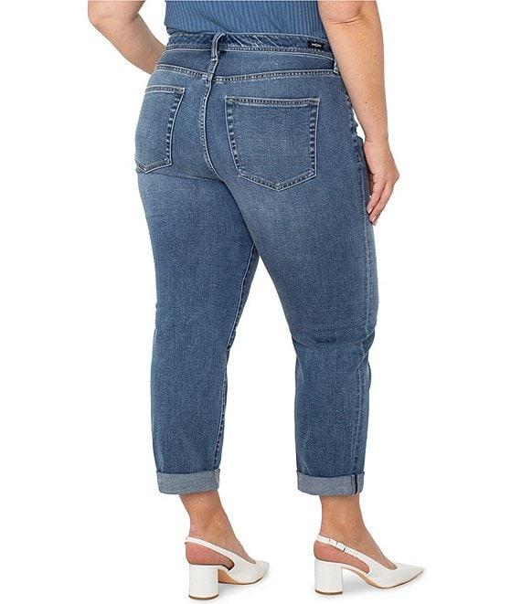 From Liverpool Los Angeles Plus, this jean features: Stretch denim fabrication Straight leg silhouette Mid-rise Belt loops Five-pocket styling Looser fitting boyfriend jean Wide rolled cuffs Cropped length Front button/zipper fly closure Approx. 26" inseam (rolled), 29" (unrolled) Cotton/elasterell/spandex Machine wash cold/tumble dry low Imported. Meet the boyfriend that checks all the boxes. Comfortable. Reliable. Friend Approved. Willing to go anywhere. What more could you want? This versatile jean is meant to sit low on the hip and is a looser fitting boyfriend jean. This boyfriend jean with vintage like characteristic is the perfect jean for year-around-wear. The rolled cuff adds an extra touch, making these jeans perfect for both laid-back outings and dressier occasions.