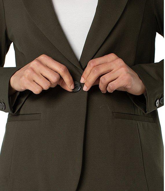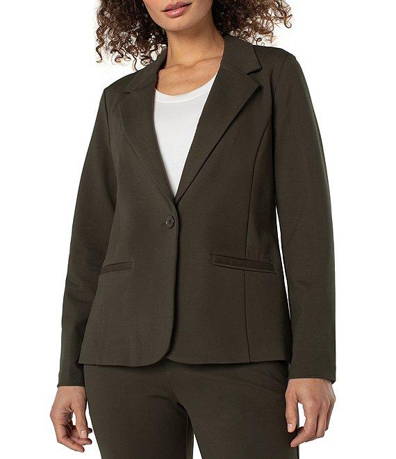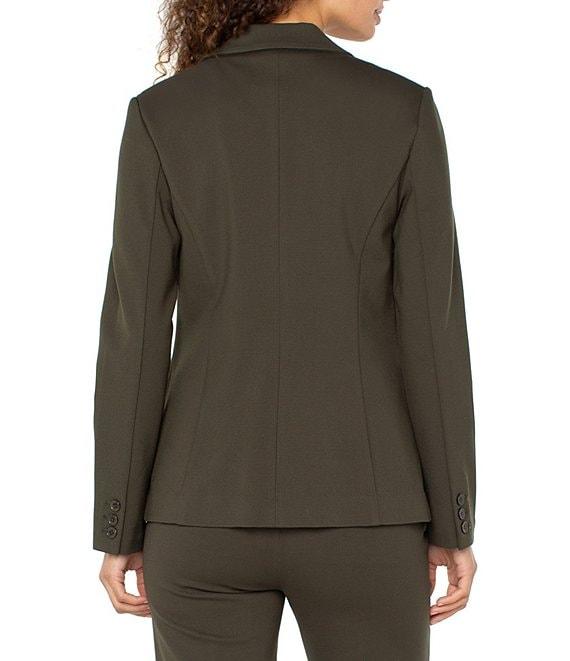 From Liverpool Los Angeles, this blazer features: Stretch ponte fabrication Notch lapel neckline Long sleeves Fitted One button closure Approx. 26" in length Rayon/nylon/spandex Machine wash/tumble dry Imported. A perfect blazer that is comfortable and pairs beautifully with trousers or denim. A true wardrobe must have.