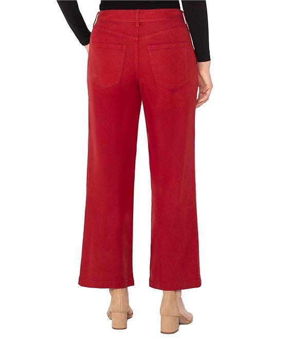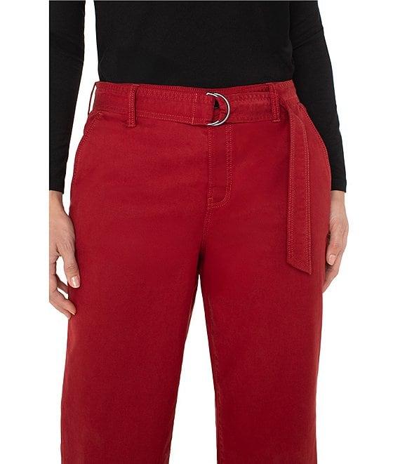 From Liverpool Los Angeles, these pants feature: Wide leg silhouette High rise Belt loops 4 pocket styling Self fabric belt Ankle length Front button and zipper closure Approx. 28" inseam, 21.25" leg opening. front rise:11.75", back:15.75" Tencel/cotton/linen/spandex Machine wash cold/tumble dry low Imported.