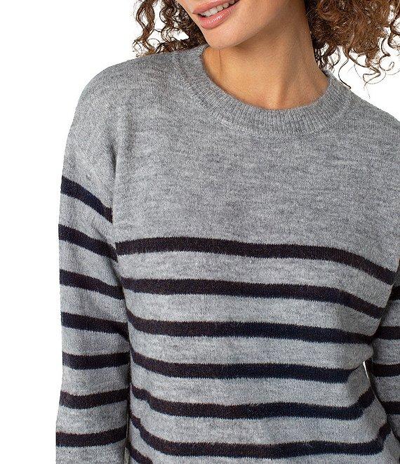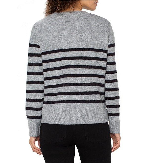 From Liverpool Los Angeles, this sweater features: Stretch ribbed knit fabrication Crew neckline Long sleeves Dropped shoulders Stripe pattern Straight hemline Pullover construction Approx. 23.5" length Acrylic/polyester/elastane Machine wash Imported.