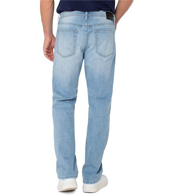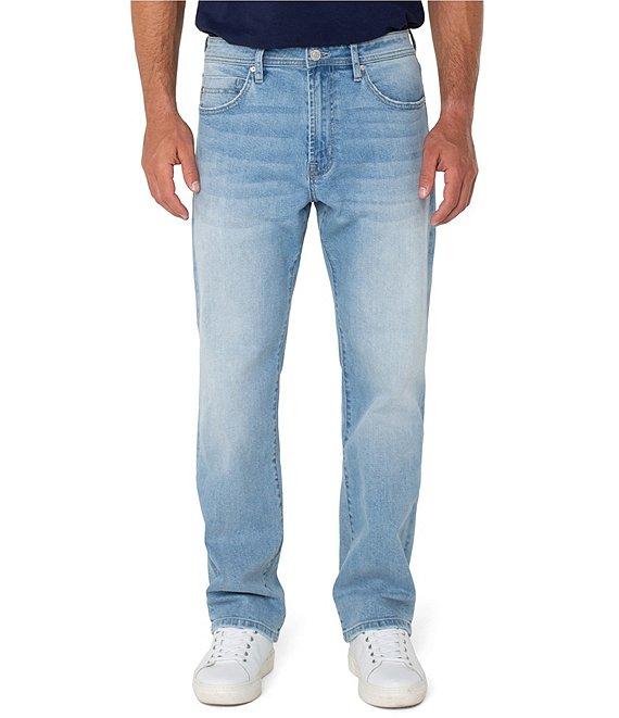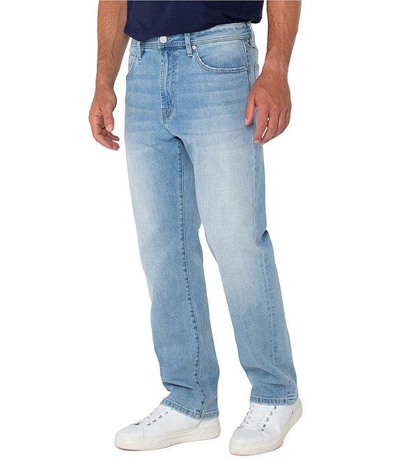 From Liverpool Los Angeles, these jeans feature: Loose fit Straight legs Flat-front silhouette 5-pocket styling "Sanding" and "whiskering" effect Contrast stitching on the pockets 17" leg openings Cotton/recycled/polyester denim Machine wash/tumble dry Imported.