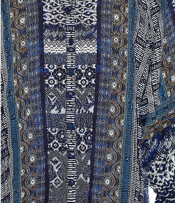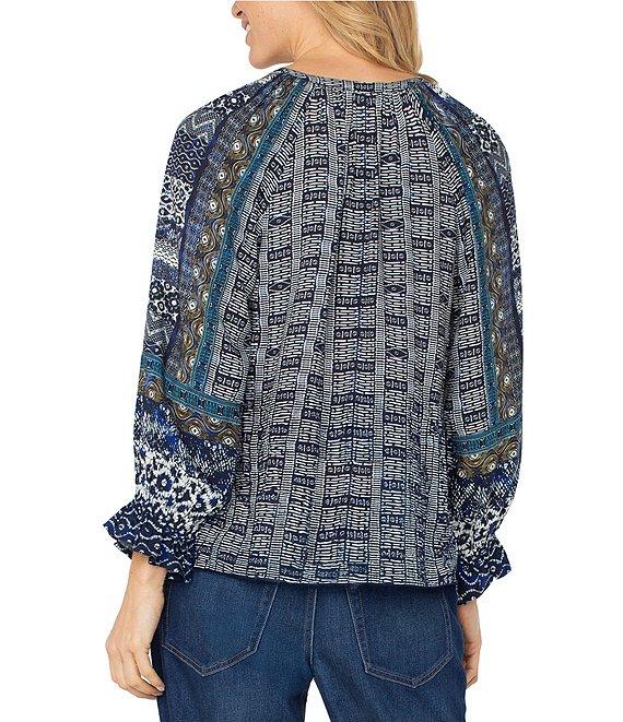 Liverpool Los Angeles Woven Printed Split V-Neck 3/4 Sleeve Button Front Blouse