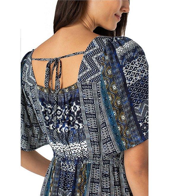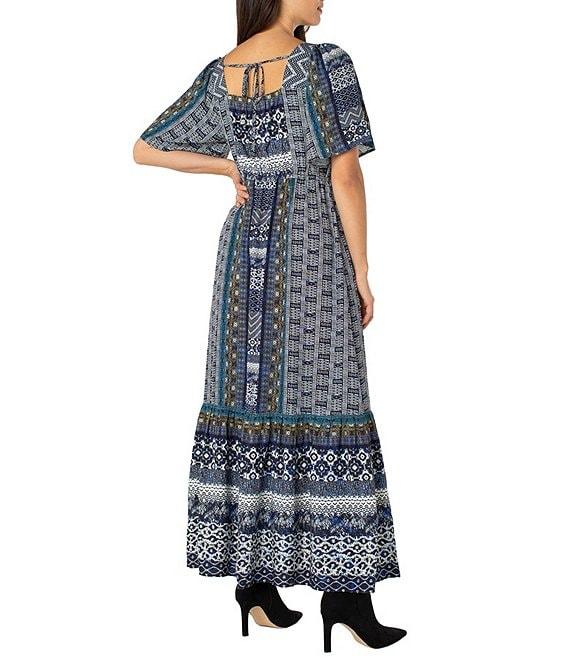 Liverpool Los Angeles Woven Printed Square Neck Short Sleeve Maxi Dress