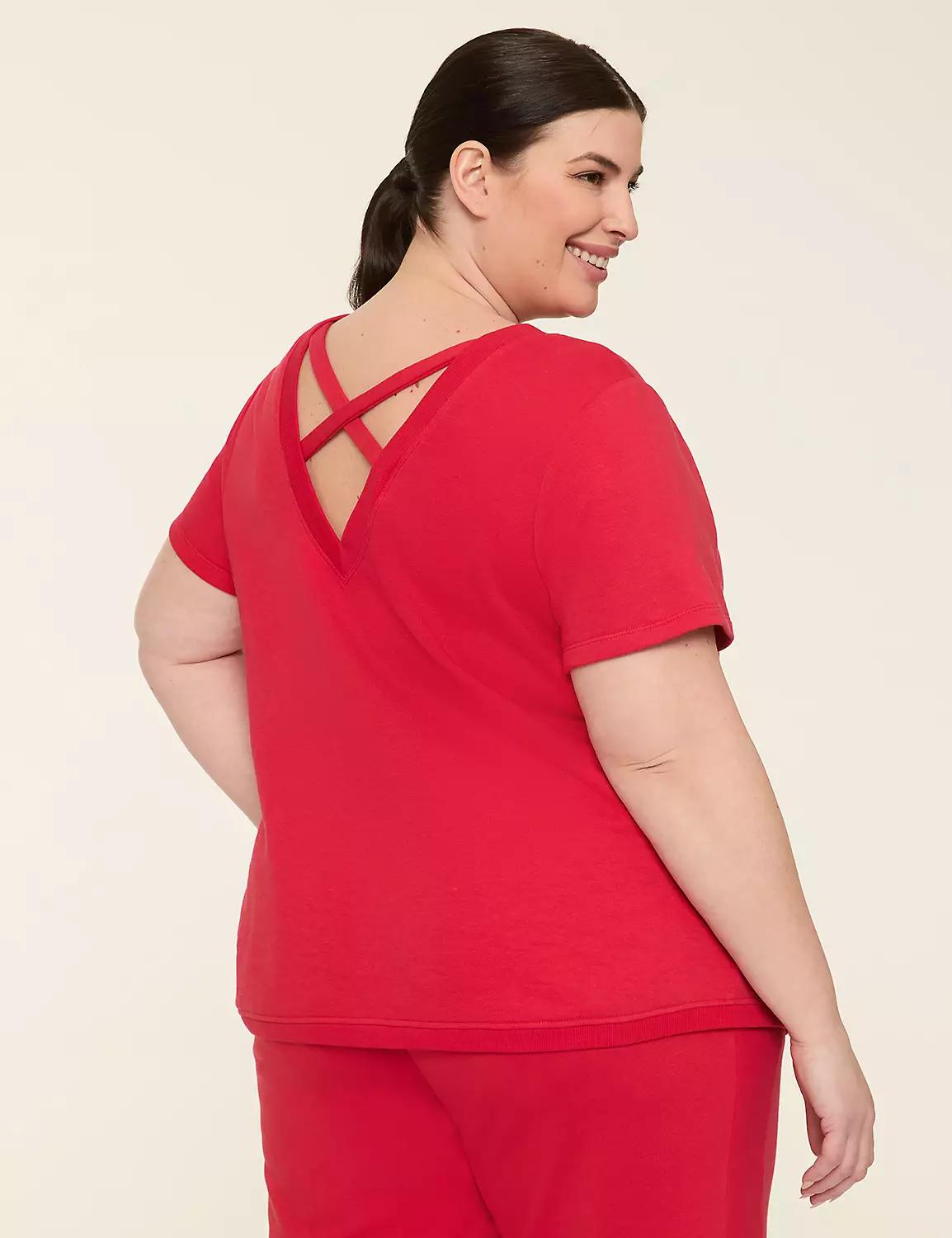 Shop for a LIVI French Terry Short-Sleeve Cross-Back Sweatshirt at LaneBryant.com. Read reviews and browse our wide selection to match any budget or occasion.