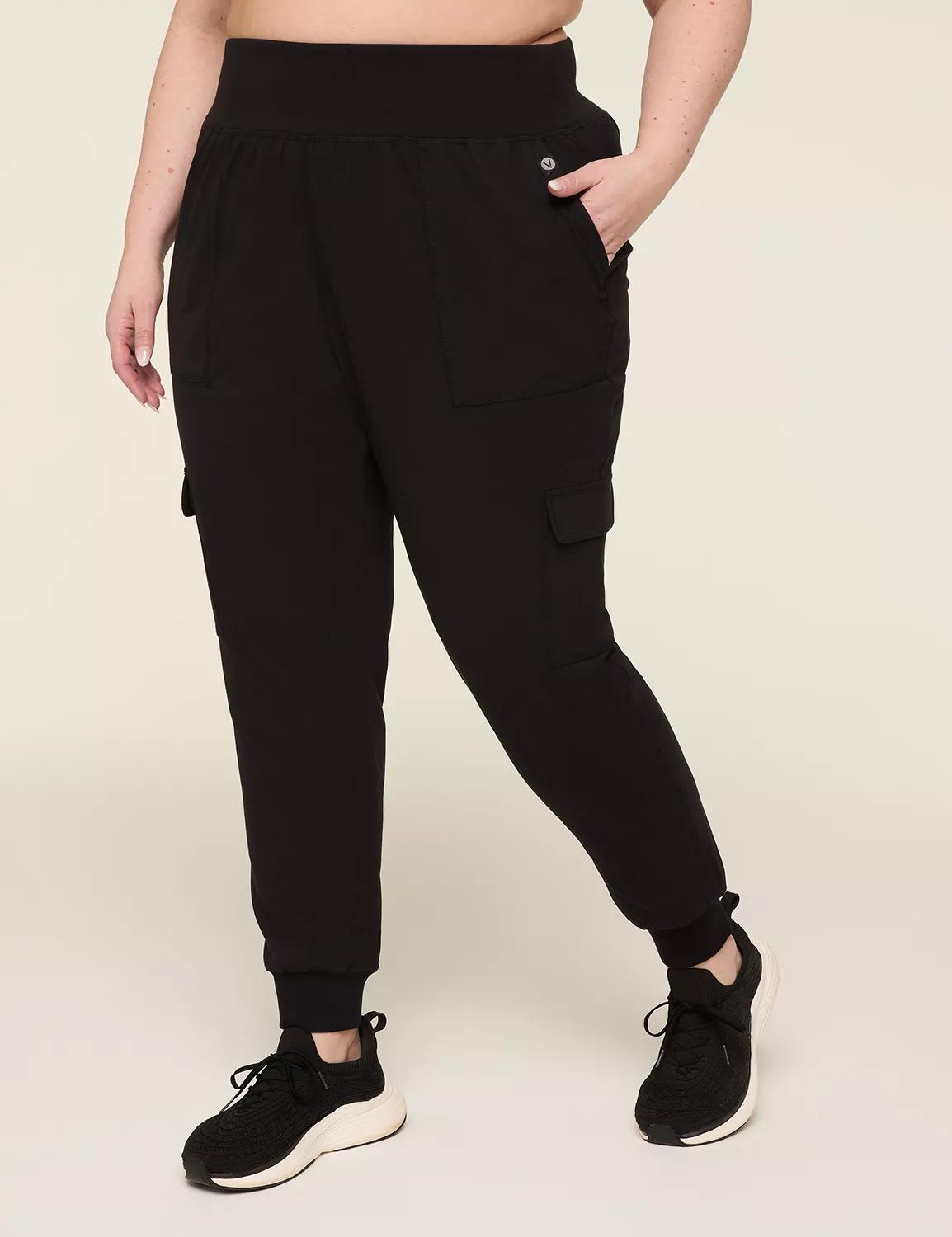 Available in Plus Size Cargo + Jogger + Signature Stretch fabric = a versatile, ready-for-anything staple youll love all season long. Covered elastic waistband. Two front angled pockets, two cargo pockets. Ribbed cuffs. LEG SHAPE: Slim Jogger. Slightly relaxed from hip to knee. Tapers to gathered cuff.INSEAM: 28RISE: HighFABRIC: Signature Stretch. Our do-anything, breathable cotton/spandex blend with soft, supportive stretch. Item Number #409267Inseam Length: 28 Imported Plus Size Activewear